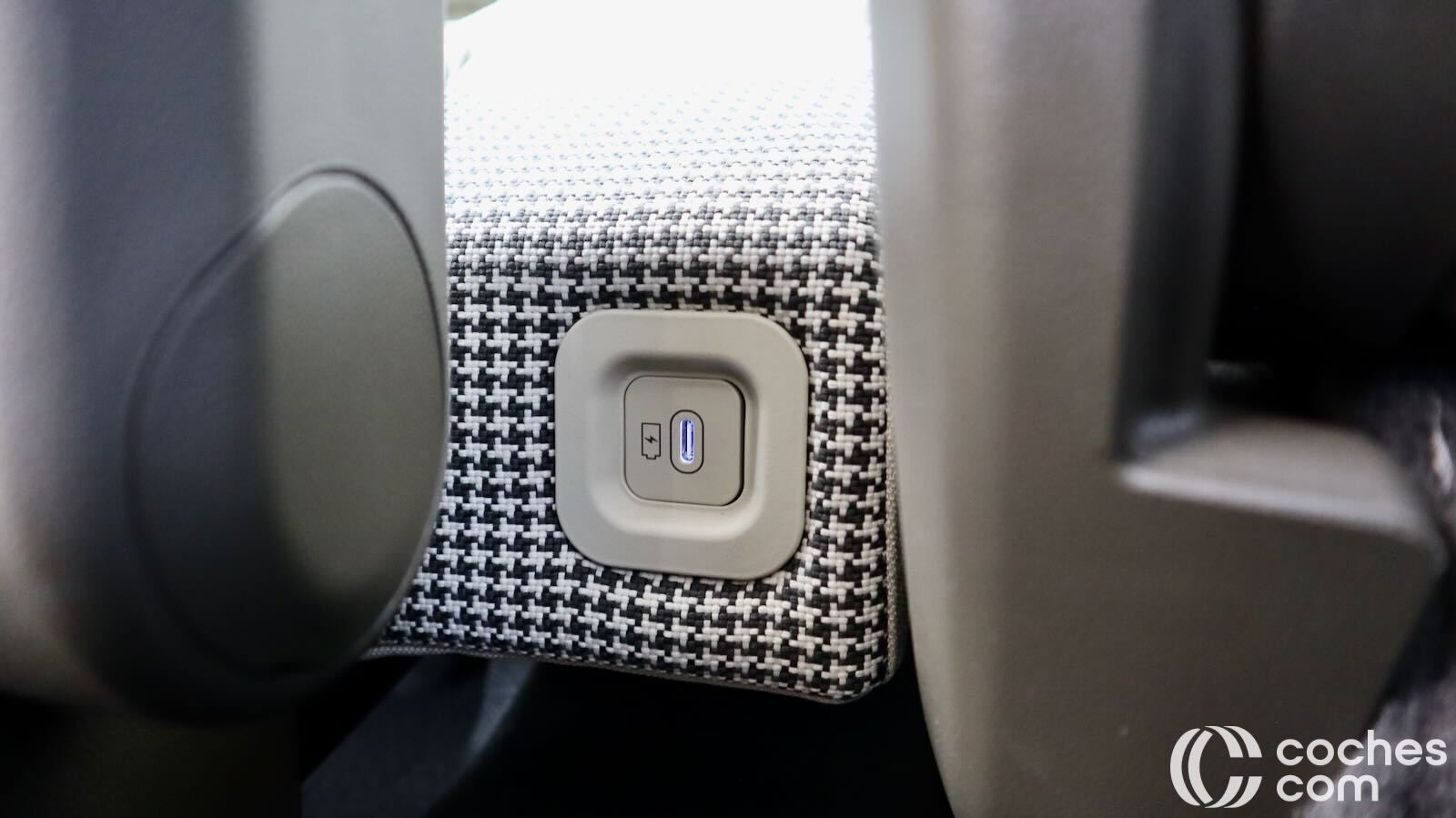 Además contamos con una banqueta dividida en dos partes que puedes regular 16 cm longitudinalmente y los asientos son reclinables en varias posiciones. Tenemos también una toma USB_C, algo oculta pero ahí está.