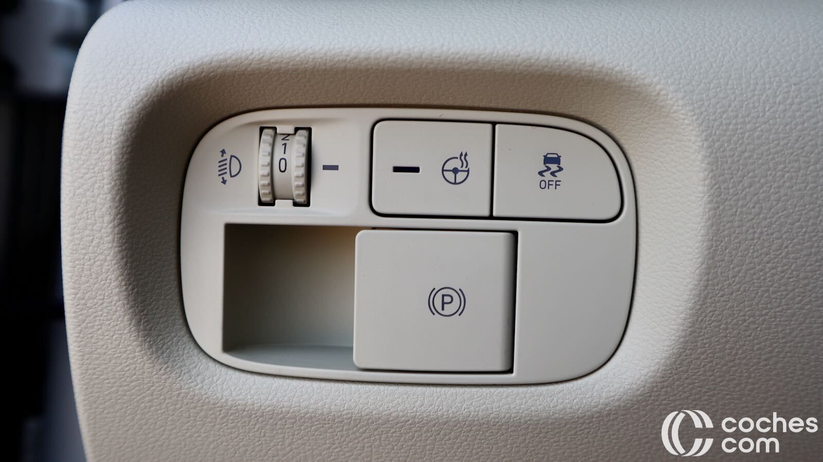La presencia de esas pantallas no impide que el Inster sea uno de los coches nuevos con más botones que he probado últimamente. Accesos directos al sistema multimedia con ruletas para dial y volumen, módulo de climatización muy comprensible… Por cierto, si te lo preguntabas, el selector del cambio está en una palanca tras el volante, que tiene también levas y un botón para los modos de conducción.