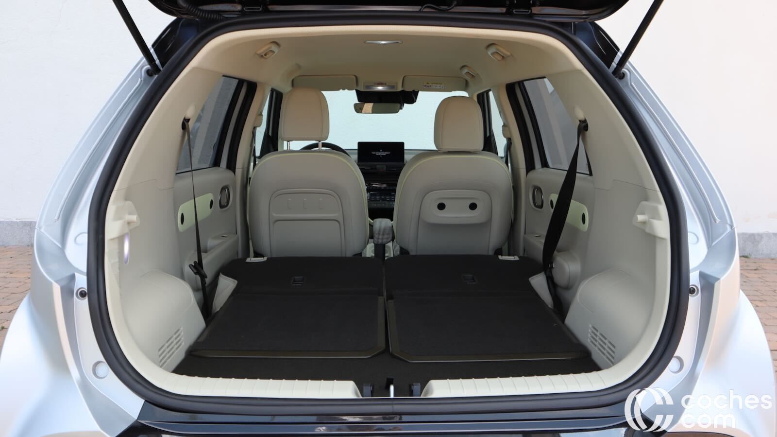 El maletero parece pequeño ya que anuncia 238 litros y eso incluye el espacio bajo el piso, que casi siempre vas a reservar para los cables de carga, aunque siempre puedes colocar ese suelo en la aprte más baja y prescindir de él. Ojo, que si llevas los asientos a su posición más adelantada consigues un espacio de 351 litros de capacidad.