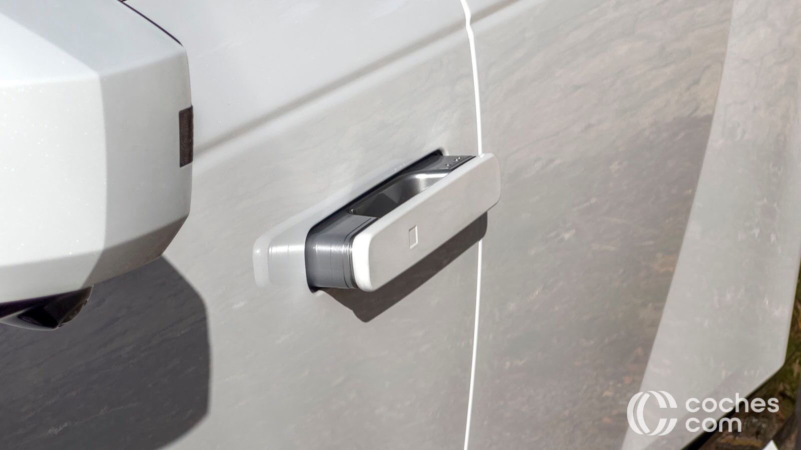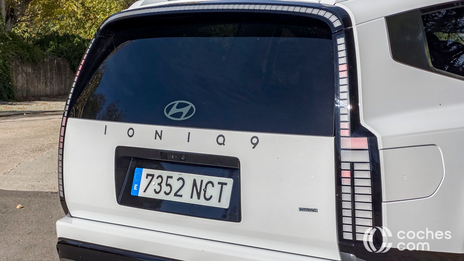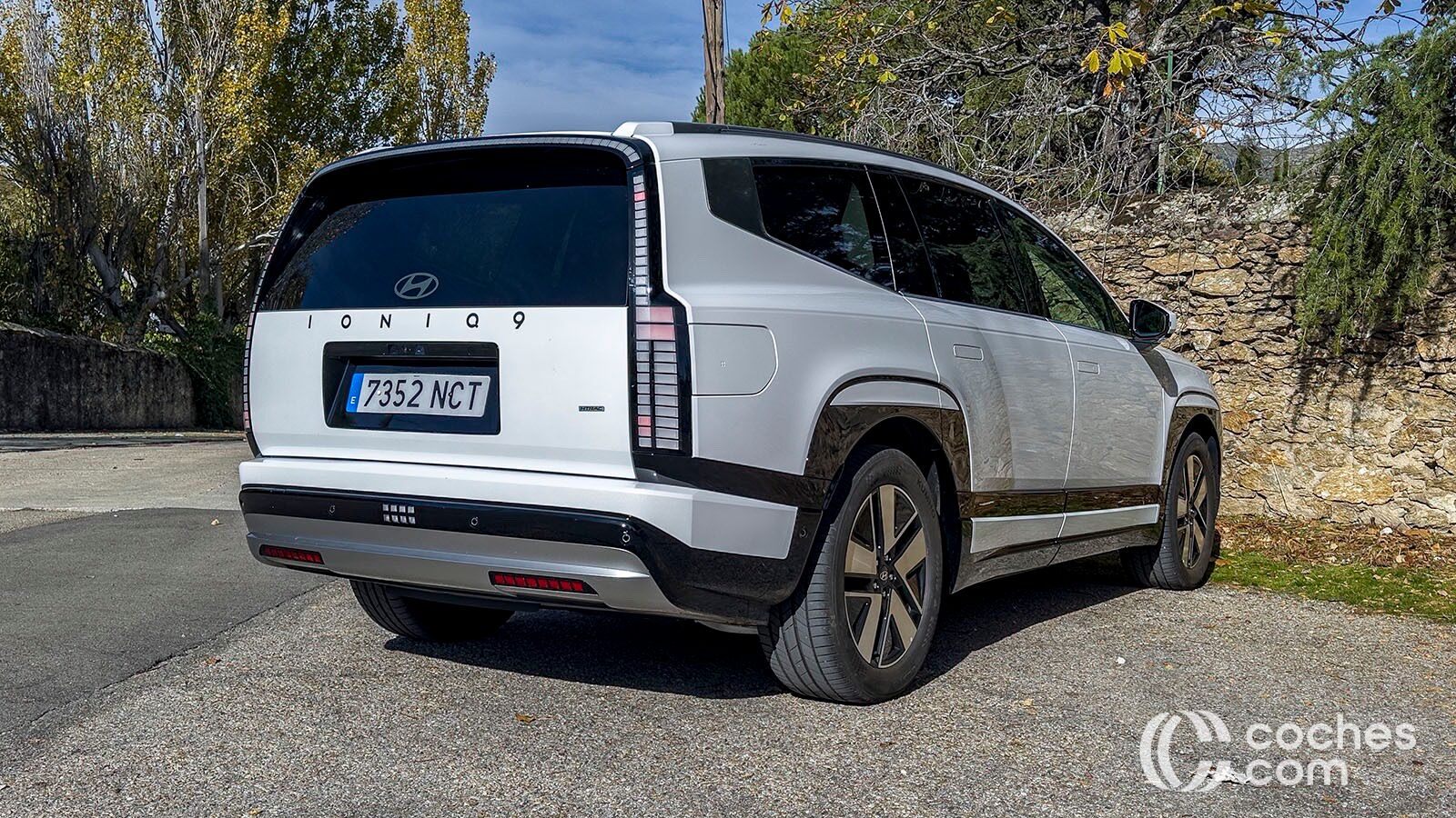 Son necesarios para que entren las llantas de 19 hasta 21 pulgadas que se pueden configurar en este modelo. Se ve que han trabajado en la aerodinámica, pues a las aletas activas hay que sumar unos tiradores enrasados en la carrocería o la posibilidad de cambiar los espejos retrovisores convencionales por unos digitales. En ese caso puede arrojar un coeficiente mínimo de 0,26 Cx. Cuando llegamos a la zaga del Ioniq 9 nos damos cuenta de su magnitud real.