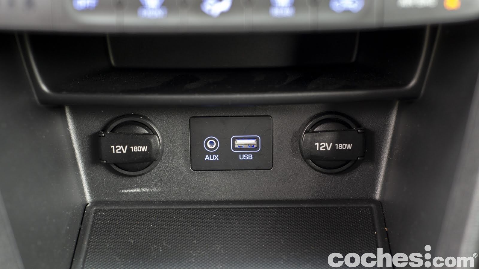 El sistema de climatización queda a mano y se compone de dos ruletas laterales y un pequeño display entre ellas, en nuestra unidad de prueba era monozona. Debajo del todo se sitúan los sistemas de conectividad tipo USB, AUX y dos salidas de 12 voltios. En acabados superiores, la bandeja para situar objetos cuenta con el sistema de carga por inducción compatible con smartphones de última generación.