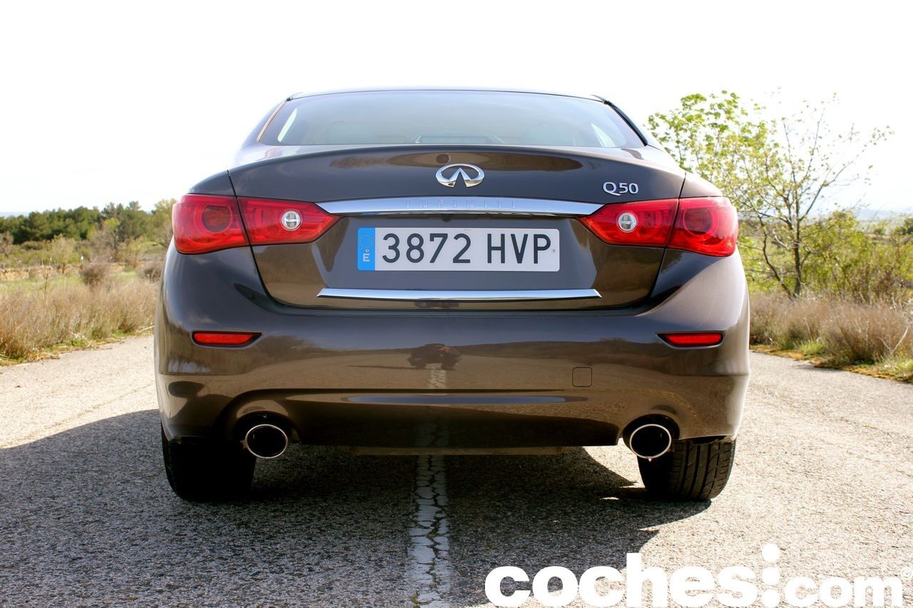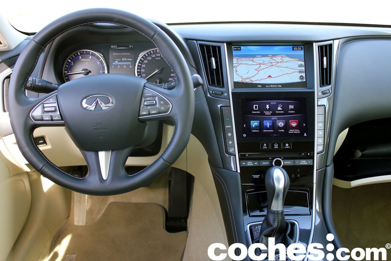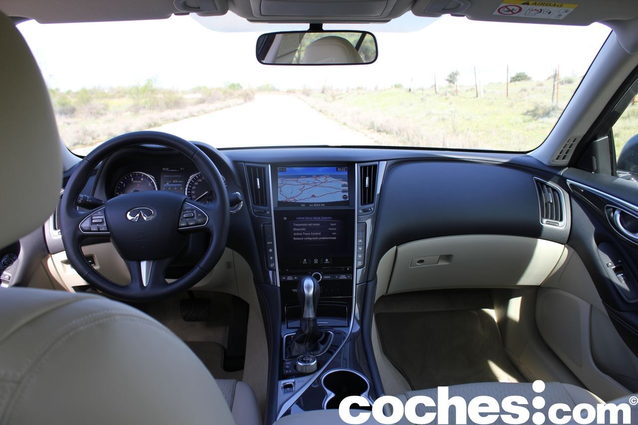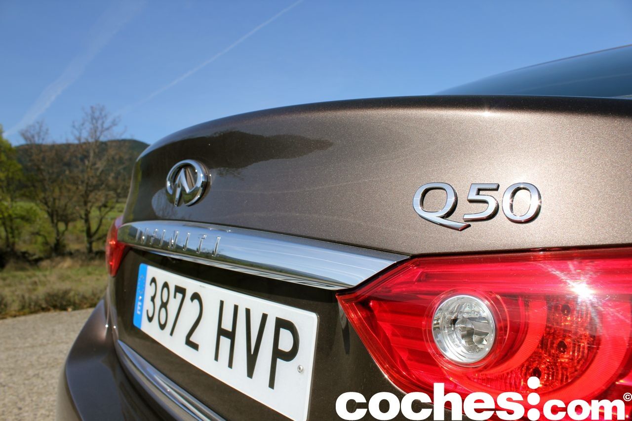 En su contra podemos señalar el poco refinado motor diésel, que debería mejorar su aislamiento acústico a bajas velocidades. Puede elegirse con la mecánica híbrida que combina un motor V6 y otro eléctrico, con una potencia conjunta de 364 CV, en el que imaginamos estos problemas de refinamiento no existirán. El problema es que el Infiniti Q50 con ese propulsor no se venderá tan bien como el diésel por el precio... En el horizonte se vislumbra un motor de gasolina 2.0 que podría convertir a este coche en una auténtica delicia... y el Q50 Eau Roge, con el motor del Nissan GT-R de 568 CV que le debería hacer ganar en imagen de marca, un producto que ya dijimos que Infiniti necesitaba.