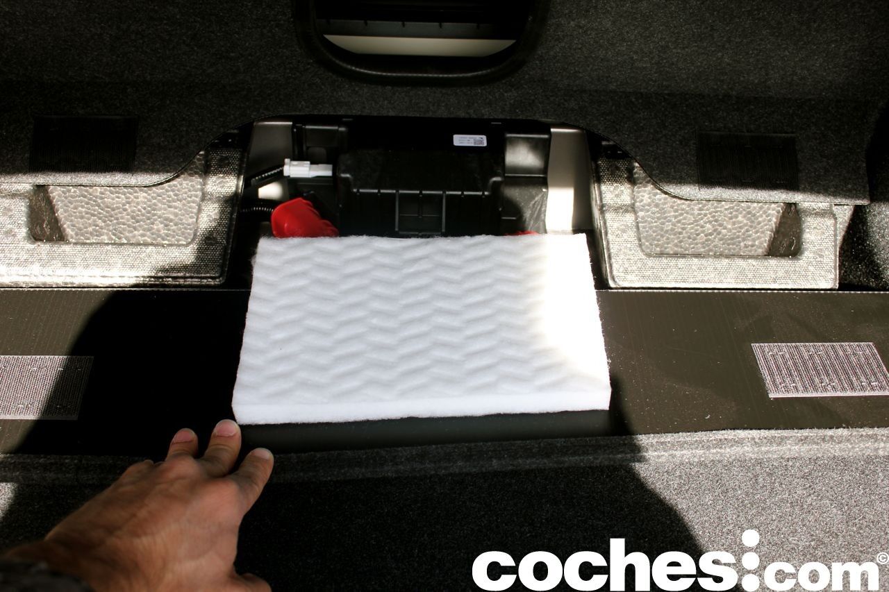 Bajo el piso hay algunas herramientas y los triángulos de emergencia. Cuando abates los asientos no queda una zona de carga totalmente plana, pero todos estos peqeuños detalles no deben hacernos dejar de ver «el bosque»: sigue siendo un maletero enorme.