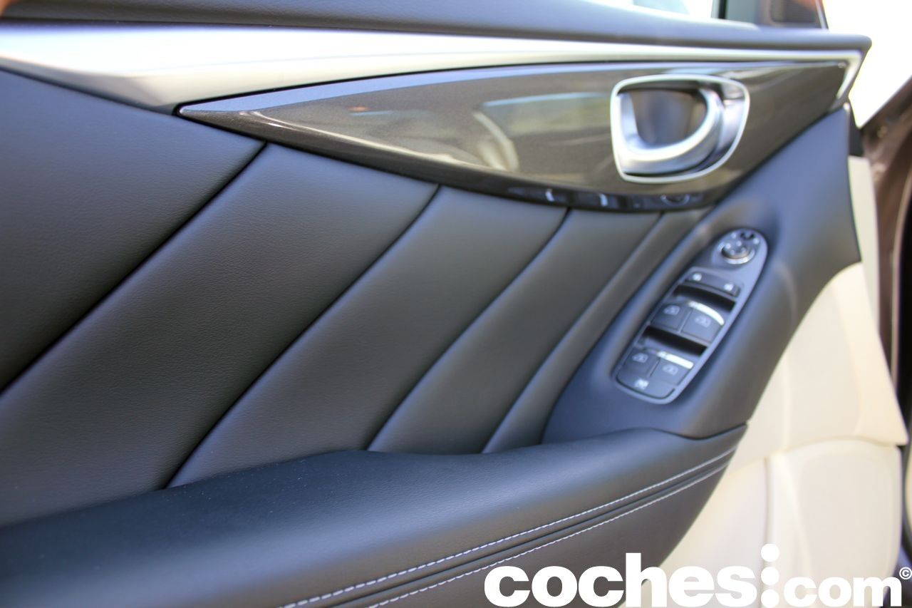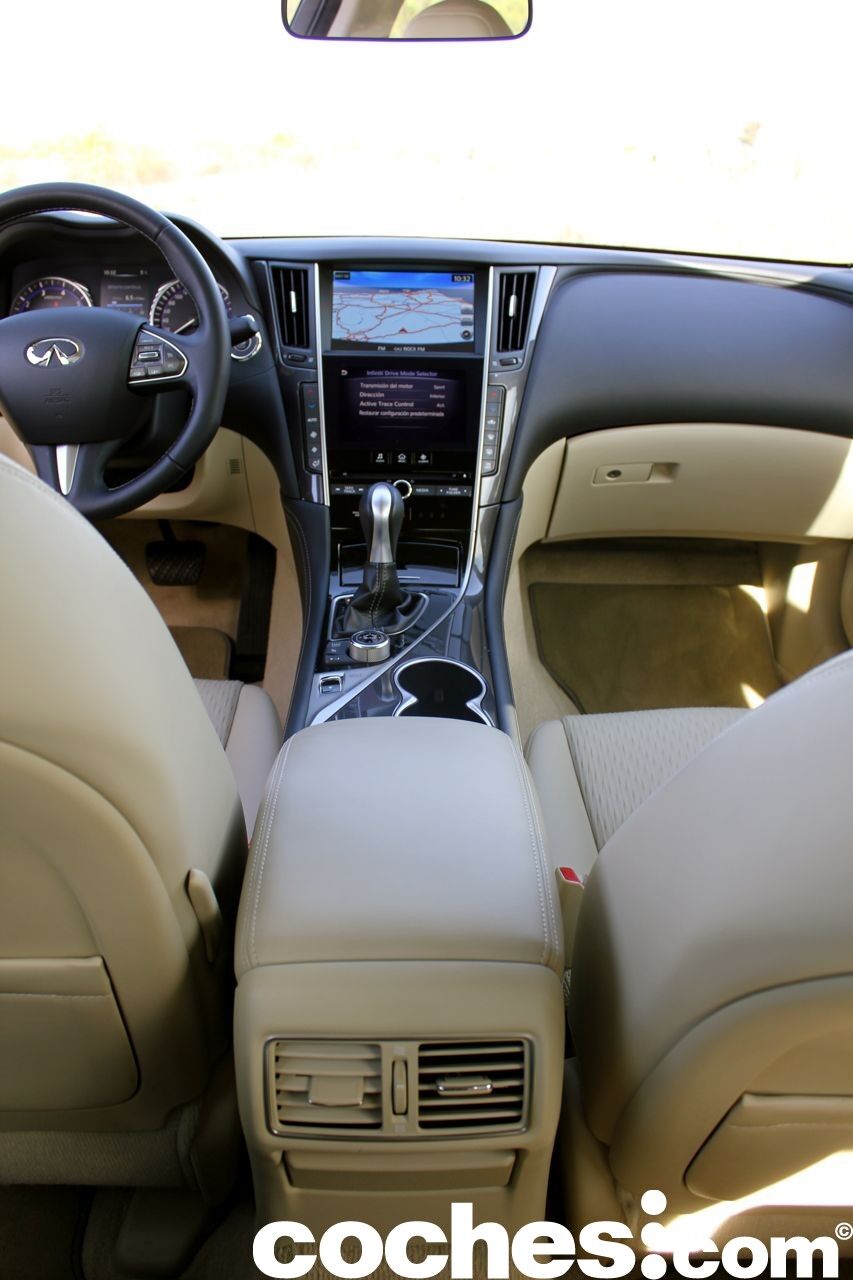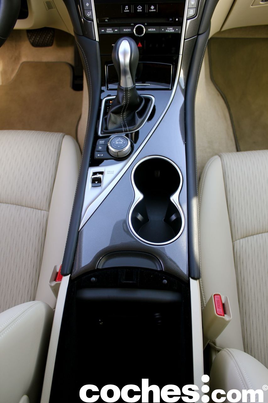 Por último, destacar el lado práctico del interior del Infiniti Q50. Tiene amplias bolsas en todas las puertas, dos huecos para bebidas en la consola central. La guantera principal y el cajón entre los asientos también suman, pero no son tampoco para tirar cohetes.