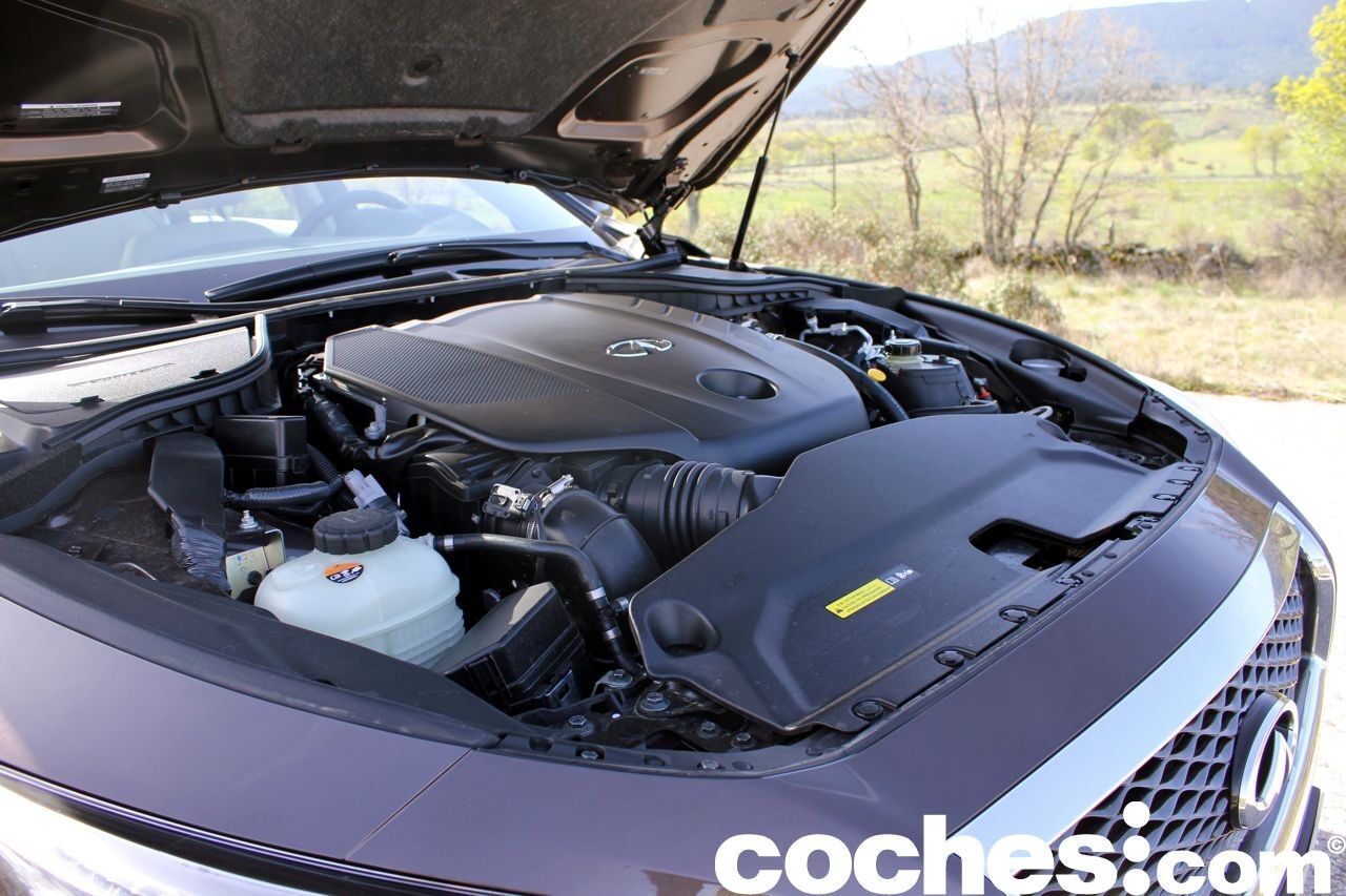 Con una cilindrada de 2.143 cc, en Nissan han mantenido el bloque, el turbo, el escape y la inyección de Daimler. Sin embargo son completamente nuevos la admisión, circuito de baja, refrigeración, carter, soprote y la unidad de control. Esos retoques han conseguido que en el Infiniti Q50 este motor desarrolle 170 CV a 4.000 rpm como por ejemplo el Mercedes CLA, que también lo monta, pero más par (400 Nm en lugar de 350, entre 1.600 rpm y 2.800 rpm).