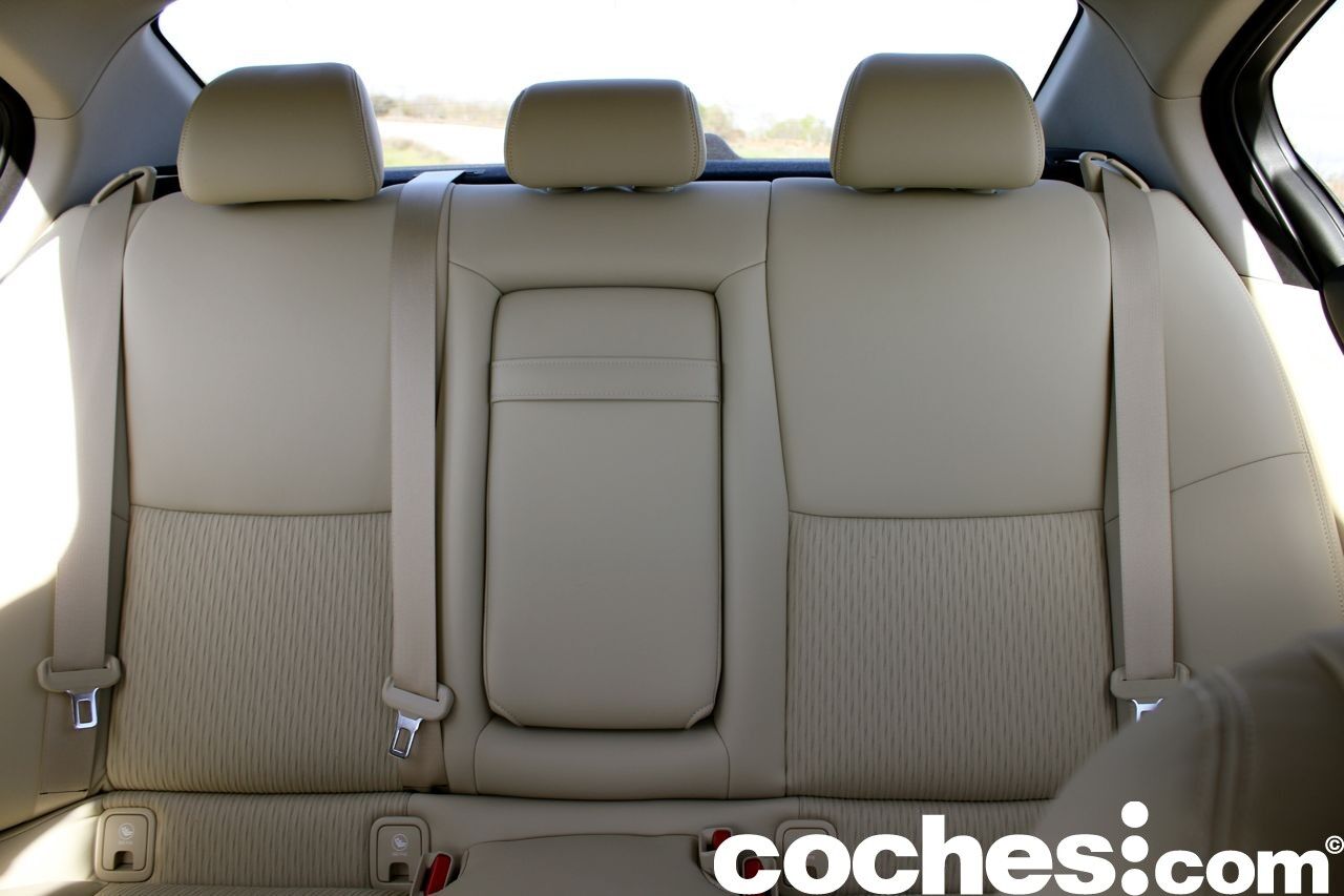 Delante hay espacio más que suficiente y detrás también.. pero para dos personas. Su gran distancia entre ejes, de 2.850 mm ha conseguido que las plazas traseras sean una pasada a lo largo. Hay un espacio para las piernas sobresaliente y como los asientos van ligeramente inclinados, resultan perfectos para un viaje largo. Vale, no es un Mercedes Clase S, pero me recordó un pco a sus butacones (ver prueba del Clase S). El problema lo tendrá el quinto pasajero, con una butaca más estrecha y con poco espacio para las piernas, ya que donde debe colocar sus pies está el túnel de transmisión.