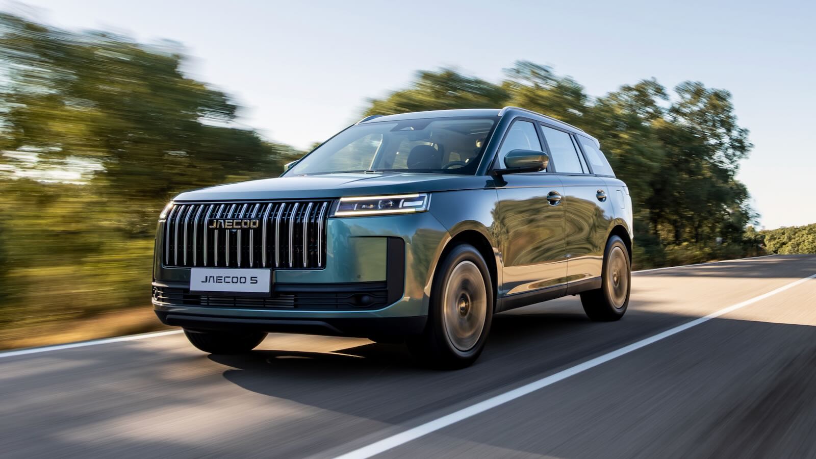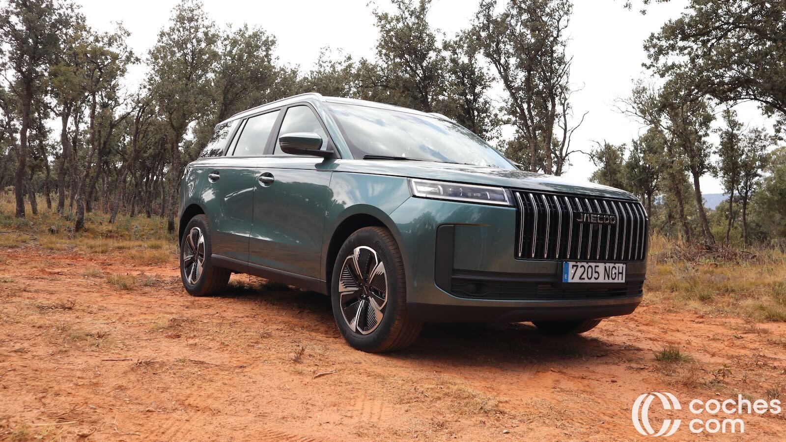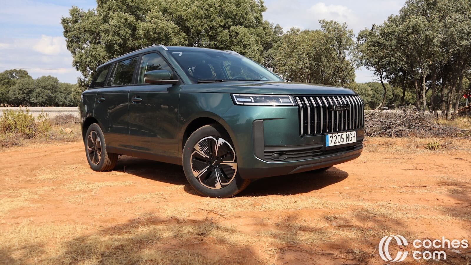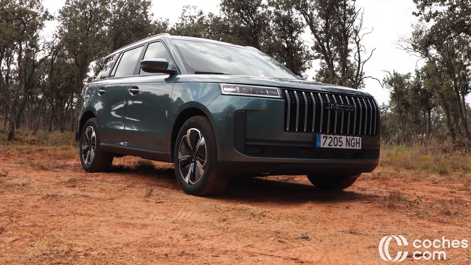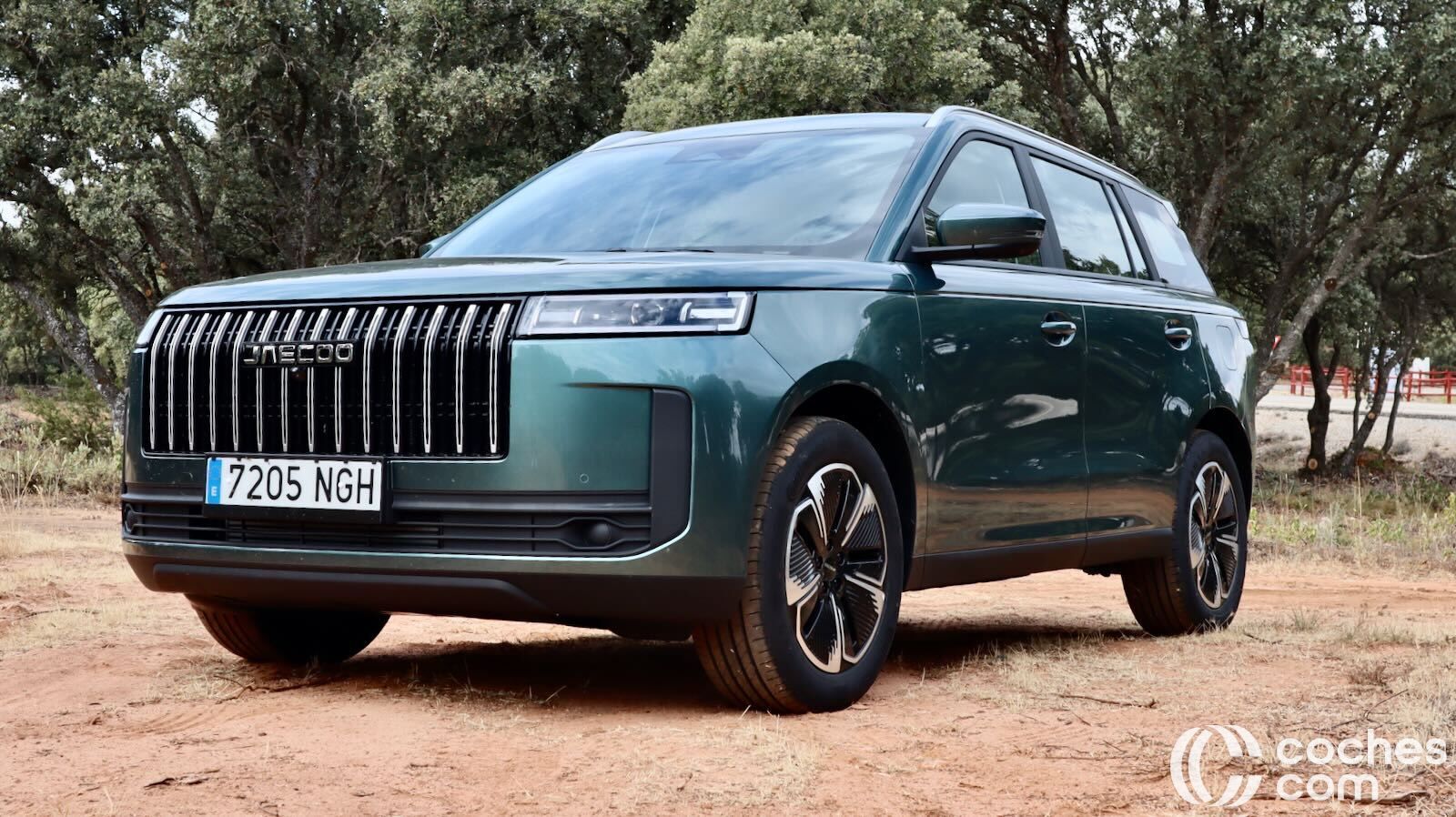 El frontal impresiona por su parrilla tridimensional, tomas de aire laterales y ópticas LED alargadas (más que en el Jaecoo 7), que aportan ese toque de modernidad y carácter. El perfil sigue la moda del techo flotante—el pilar C va en negro brillante—y una línea de cintura ascendente que da dinamismo al conjunto, aunque penaliza algo la superficie acristalada trasera.