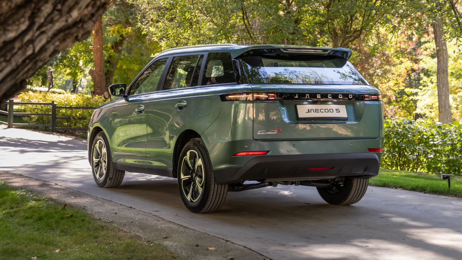 Atrás, la zaga es limpia, funcional y recibe el mismo tratamiento LED en pilotos, unidos por una banda horizontal que integra el nombre de la marca. El spoiler de techo y el difusor quieren hacer ver que tiene un toque deportivo... pero en absoluto. También es verdad que no tienen el exceso decorativo de otros SUV chinos.