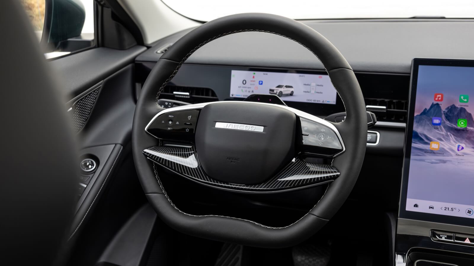En ciudad se agradece el bajo nivel de ruido—doble acristalamiento delantero y buena insonorización—y la posición de conducción alta, con visibilidad correcta y sistemas de cámaras 540° y sensores muy logrados. El tamaño es ideal para el día a día, aunque la dirección tiene cierto margen “vacío” antes de guiar las ruedas, típica de productos recién llegados de Asia.