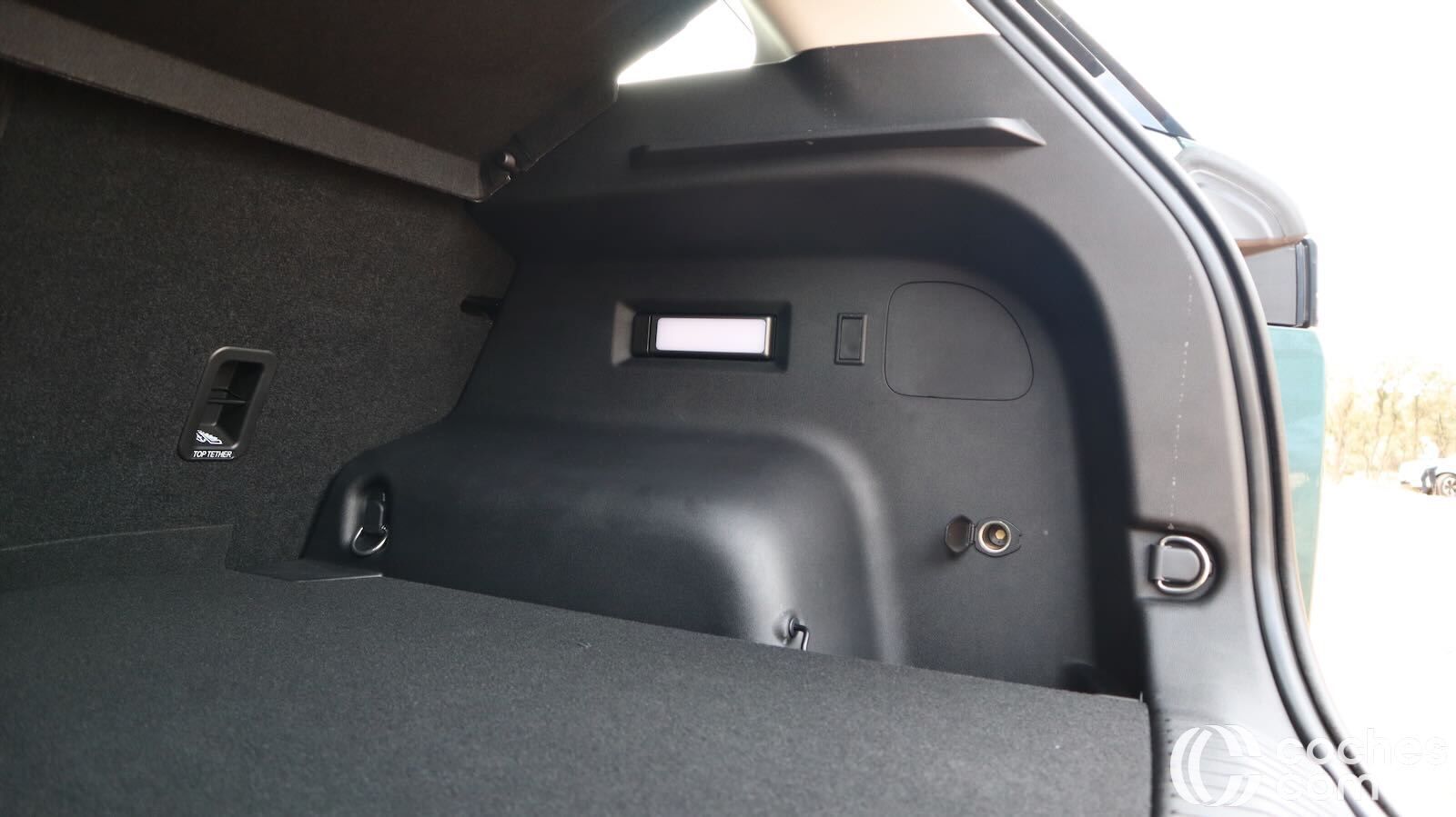 Incorpora soluciones prácticas como anillas de sujeción, iluminación, ganchos, toma de 12V y un doble fondo. Los materiales y ajustes reiteran ese enfoque práctico.
