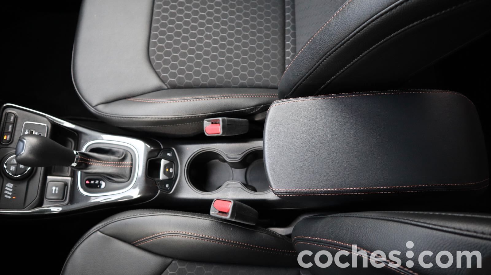 La consola central no está demasiado bien aprovechada. Es difícil encontrar un hueco para el móvil ante el selector del cambio (las tomas se encuentran cerca de él). Entre los asientos, un par de reposabebidas y un cofre no demasiado grande. Sí es de buen tamaño la guantera.