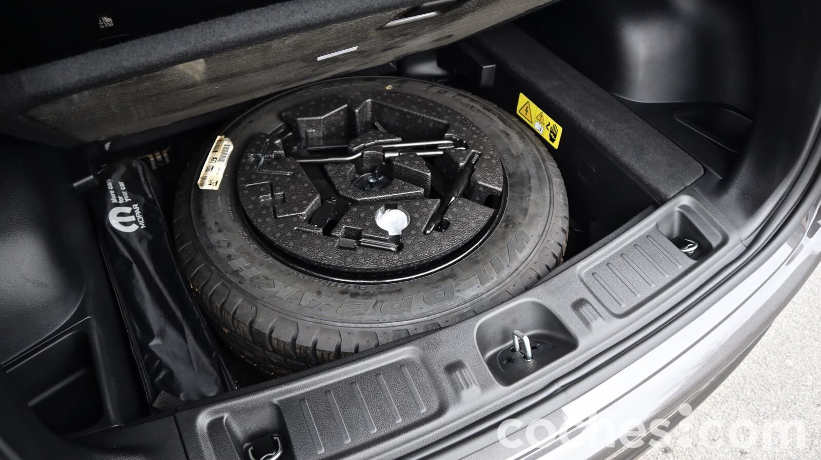 No faltan ganchos para sujetar la carga y contamos con una toma de 12 V en el lateral izquierdo. Bajo el piso contamos con una rueda de repuesto de emergencia, un detalle interesante en una versión offroad. Puedes también ampliar el espacio abatiendo los respaldos de los asientos traseros. Divididos en dos partes asimétricas, cubica 1.230 litros de capacidad.
