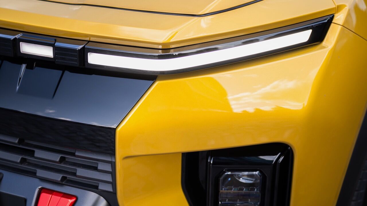 El diseño es una de las partes más importantes para este cambio de marca. La identidad visual de KGM ya ha sido marcada por el Torres y ahora vemos como la Musso EV sigue algunas líneas. En el frontal se puede ver unas formas muy marcadas, comenzando por ese capó con una depresión en la parte central, que derive en la conocida firma lumínica. Los puntos horizontales que forman la luz diurna se extienden por encima de una rejilla negra de lo más llamativa. Al mismo tiempo, vemos los faros Full LED principales integrados en los laterales del paragolpes. No pueden faltar unos detalles en rojos para enfatizar y una generosa protección en la parte inferior.