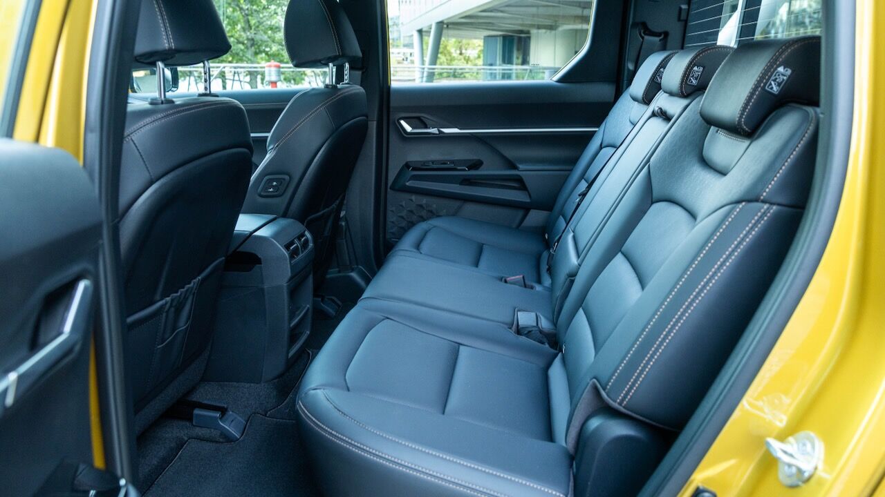 Este modelo solamente se comercializa con una configuración de doble cabina. Eso se traduce en puertas traseras para dar acceso a una segunda fila de asientos muy amplia y aprovechable. Tiene cinco plazas y, aunque las laterales son más amplias, todas ellas cumplen por sus cotas de altura y también de espacio para las piernas; sin un molesto túnel de transmisión que las surque. La modularidad es brutal y se puede mover la banqueta hasta 80 mm, al tiempo que los respaldos se pueden graduar hasta 32º en su inclinación. Hay salidas del aire en estas plazas, así como tomas USB-C en estos asientos.