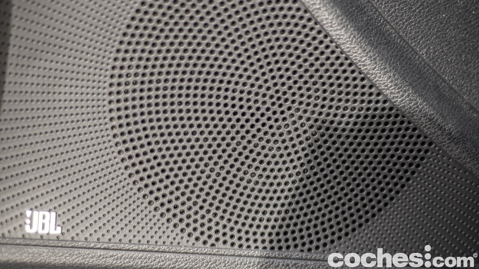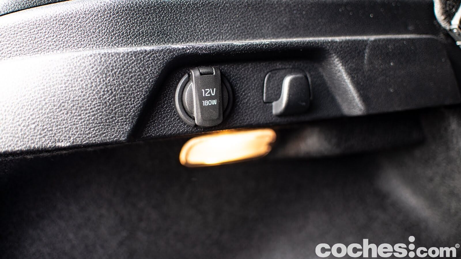 La zona de carga es muy aprovechable gracias a sus formas regulares. Cuenta con dos pisos, uno al borde de la boca del maletero y otro más abajo para ganar espacio. A los laterales, contamos con los típicos ganchos para sujetar pequeñas bolsas. En el lado izquierdo se suma una toma de corriente de 12 V y una pequeña luz. Nuestra unidad de prueba, al montar el equipo de audio JBL, incorpora altavoces de graves en el maletero.