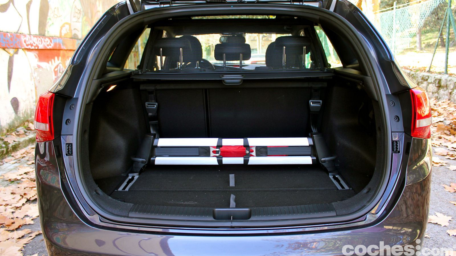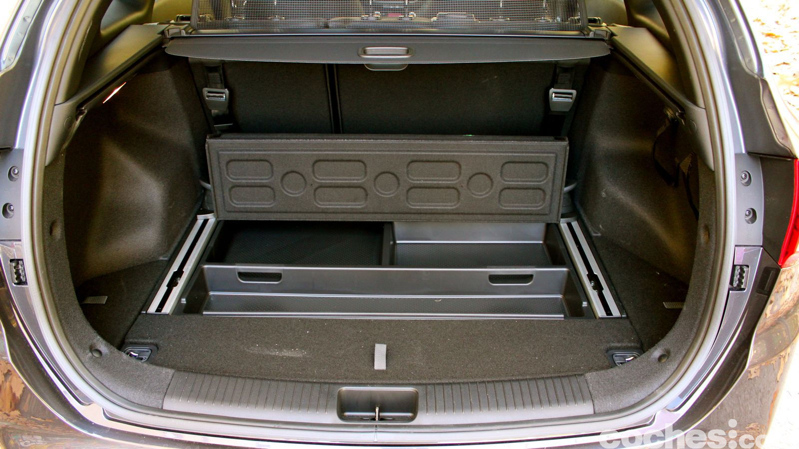 No hay tampoco cambios en la capacidad de maletero. Con sus 528 litros de capacidad, está en la media del segmento, 148 más que la versión de cinco puertas. En esta medida se incluyen los huecos que hay debajo del piso, compartimentados para guardar enseres sin que vayan dando tumbos por el maletero, de diferente profundidad (debajo de los más alejados del borde está la rueda de repuesto temporal). Puede emplearse todo el espacio hasta el techo quitando el estor enrrollable que cubre la zona de carga, ya que una red, colocada entre los asientos traseros y el techo, evita que la carga pueda llegar al habitáculo.