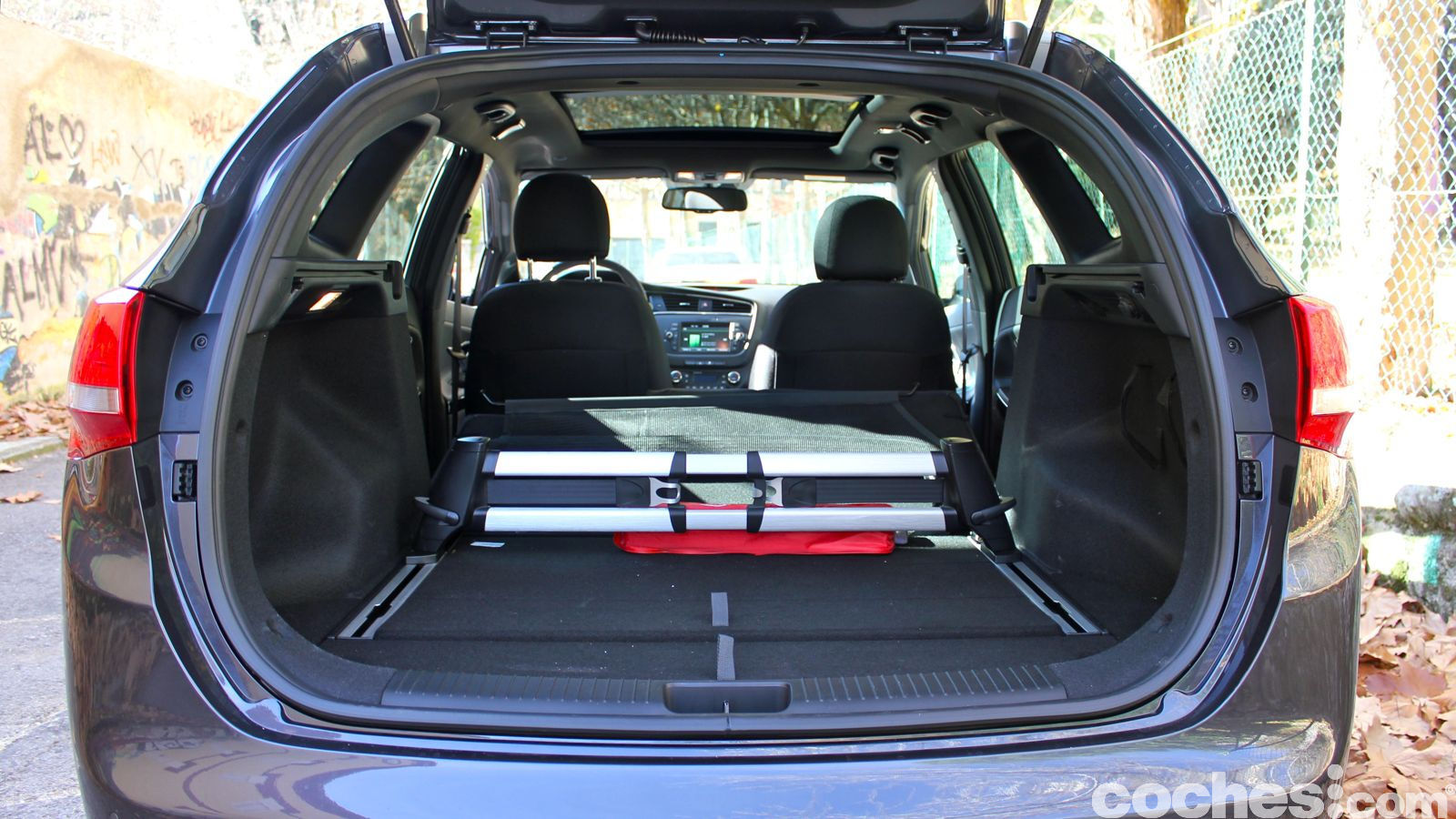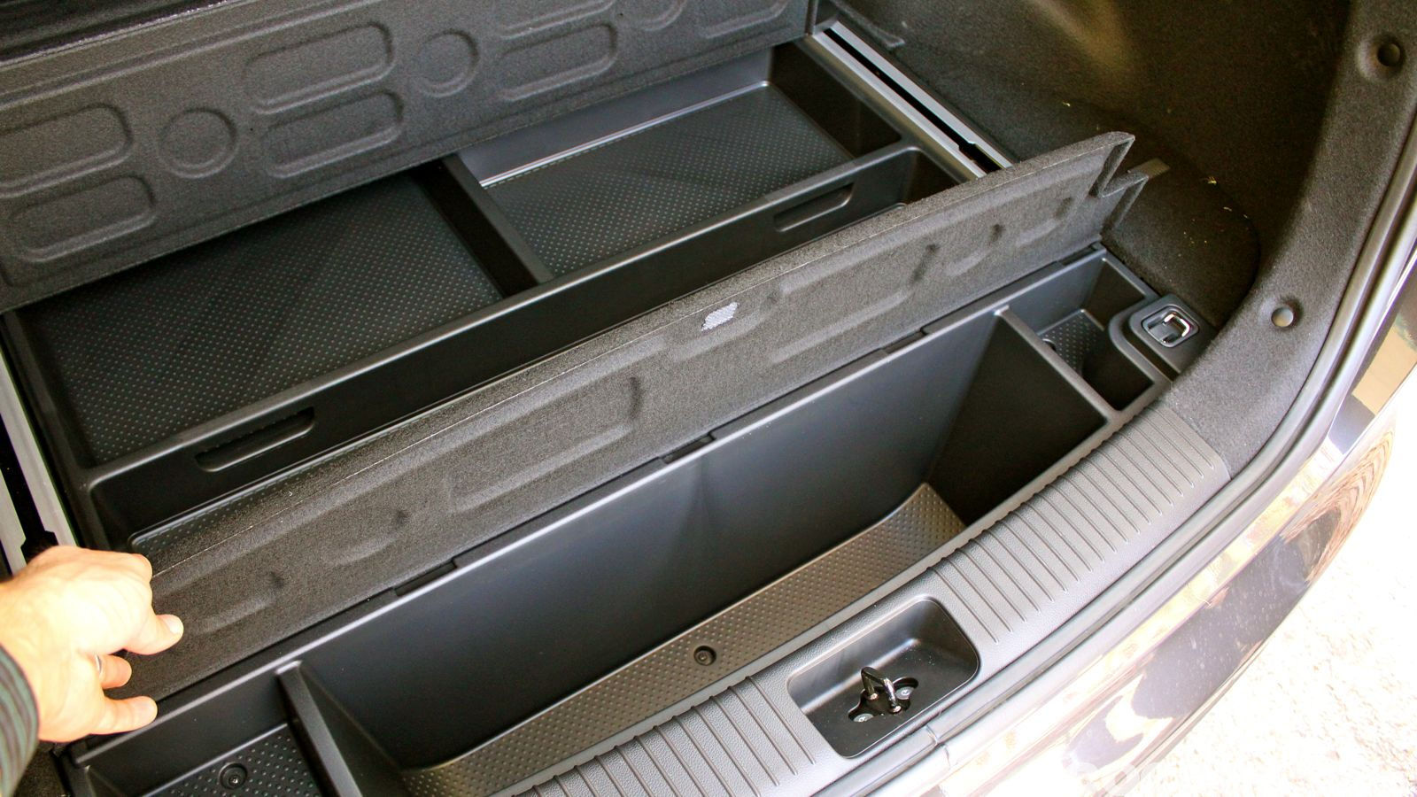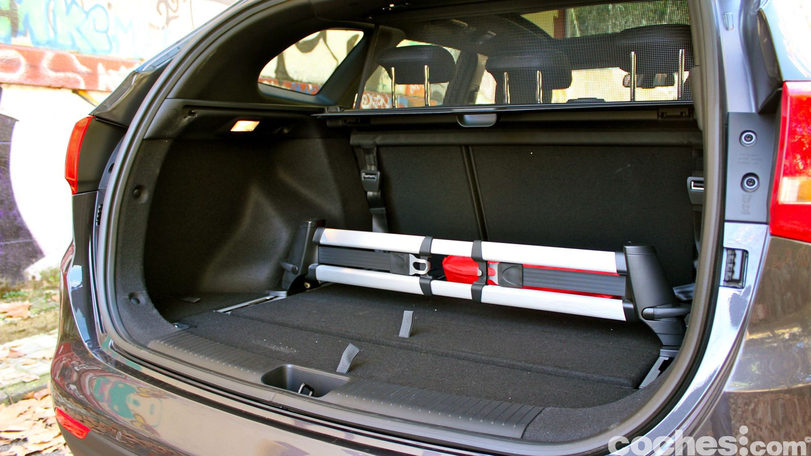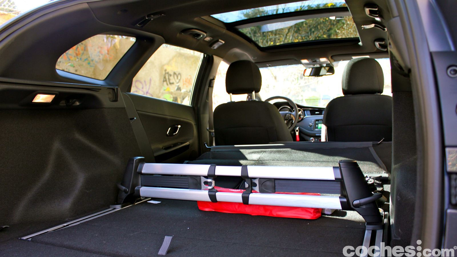 Tiene unas formas que lo hacen bastante aprovechables y, si se abaten los asientos traseros (en dos partes, en proporción 60/40) queda una superficie de carga plana, de 1.642 litros de capacidad. Nos ha gustado mucho el sistema de railes para dividir el espacio de carga. También cuenta con otras utilidades, como ganchos para sujetar la impedimenta a ambos lados o unas cintas de velcro en el lado derecho donde asegurar cosas que no pesen demasiado. No hay mucha altura hasta el borde de carga, lo que facilita subir objetos pesados.