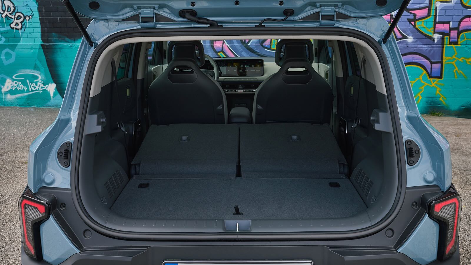 Puedes abatir los respaldos de los asientos traseros para lograr 1.400 litros de capacidad. No es totalmente plano pero sí una cifra asombrosa para un coche así. ¿Algçun pero? El umbral de carga está un poco alto. No es un drama, pero si tienes que meter peso, lo notas. Por cierto, bajo el capó delantero hay otro pequeño hueco con 15 litros.