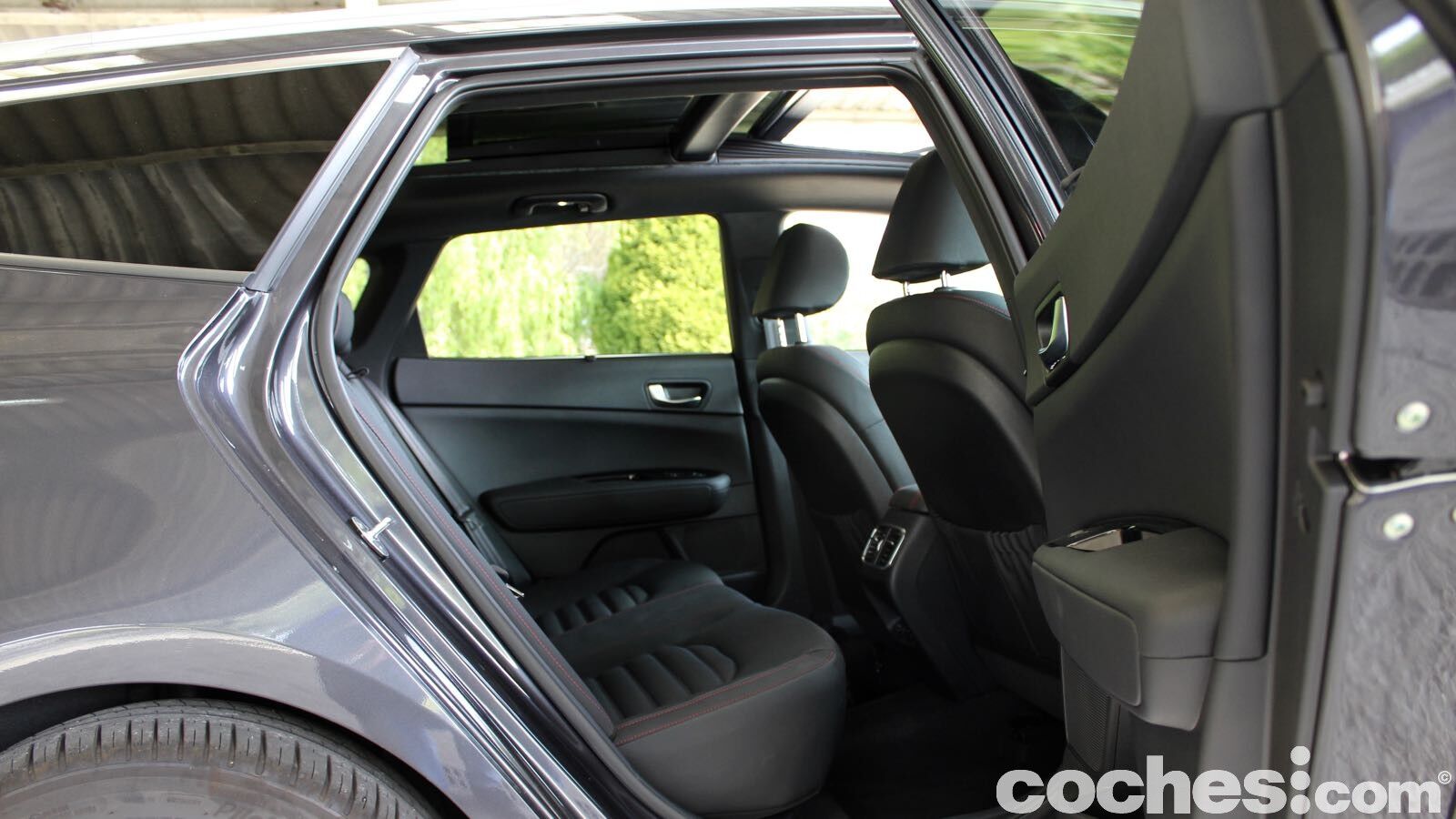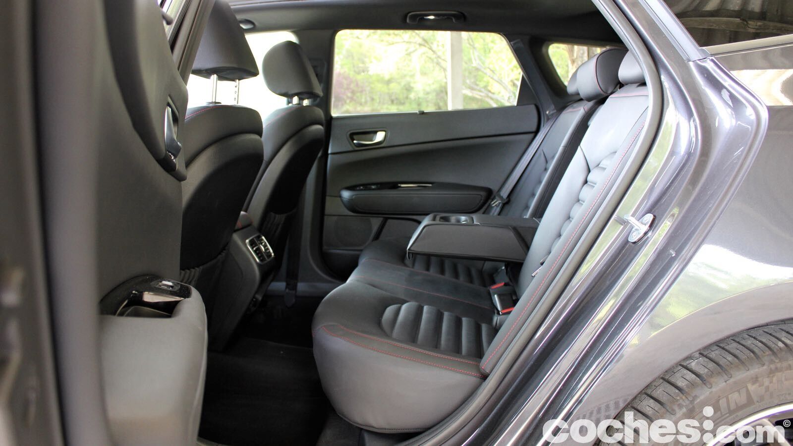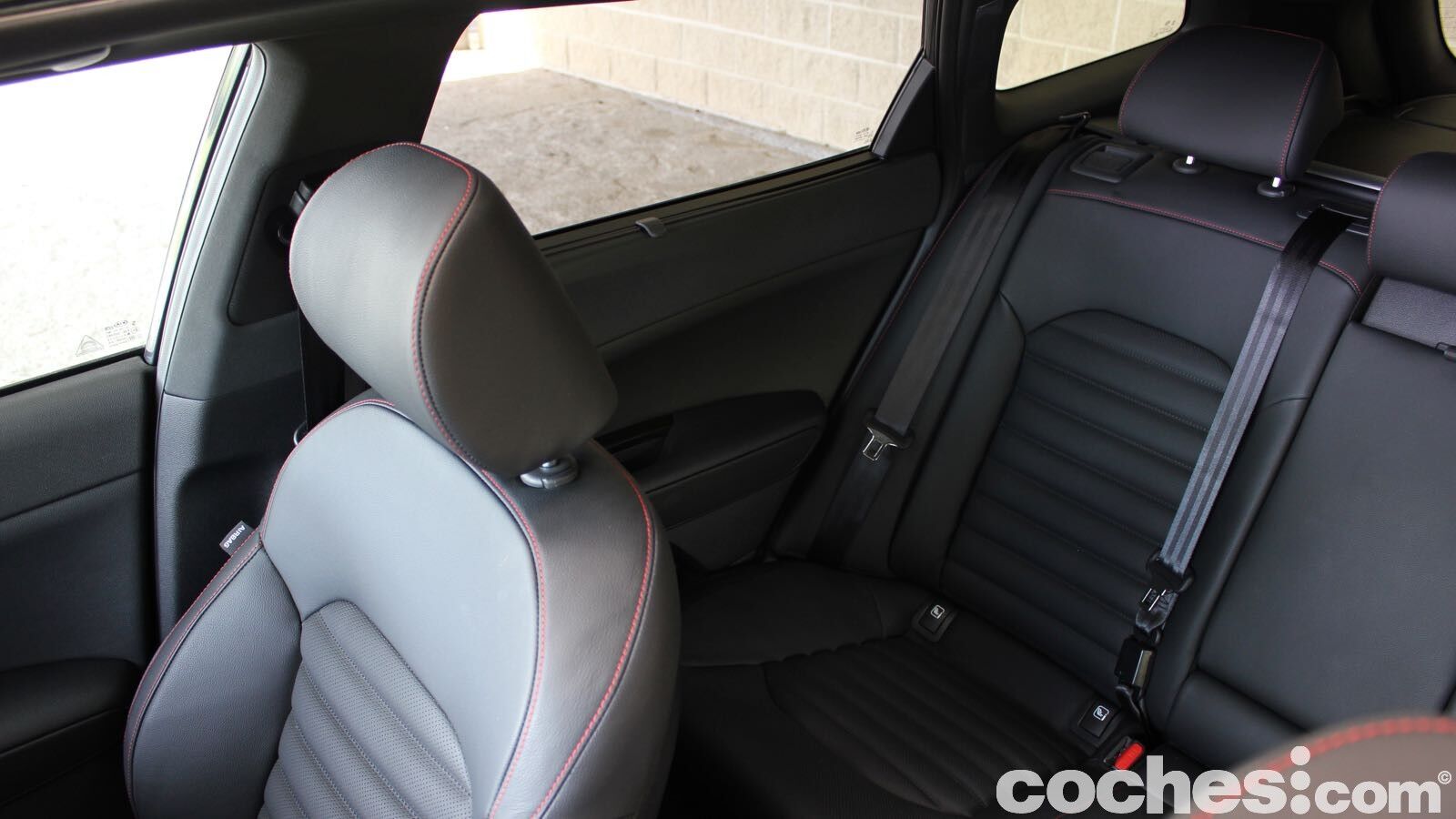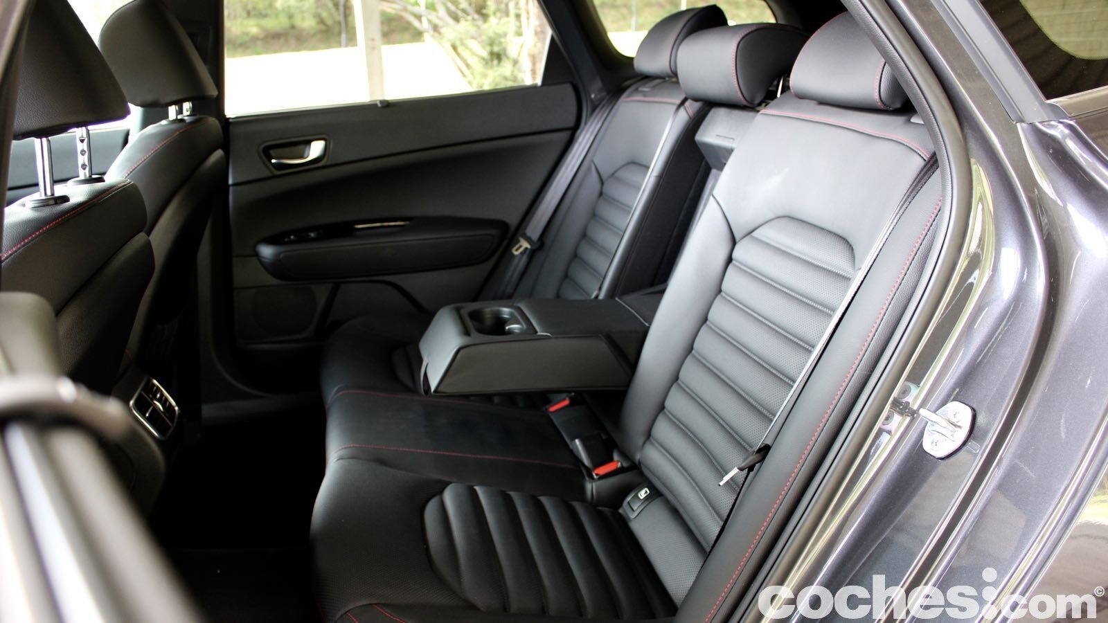 Detrás se cuenta con un espacio muy generoso, sobre todo para las piernas, tal y como ocurre en el sedán. En este aspecto es uno de los mejores del segmento. El acceso a esas plazas es bastante amplio y la única pega es que un tercer ocupante, aunque cuenta con bastante espacio en el centro en anchura, tendrá que lidiar con la presencia de un túnel de transmisión y unas salidas de aire acondicionado de bastante tamaño.