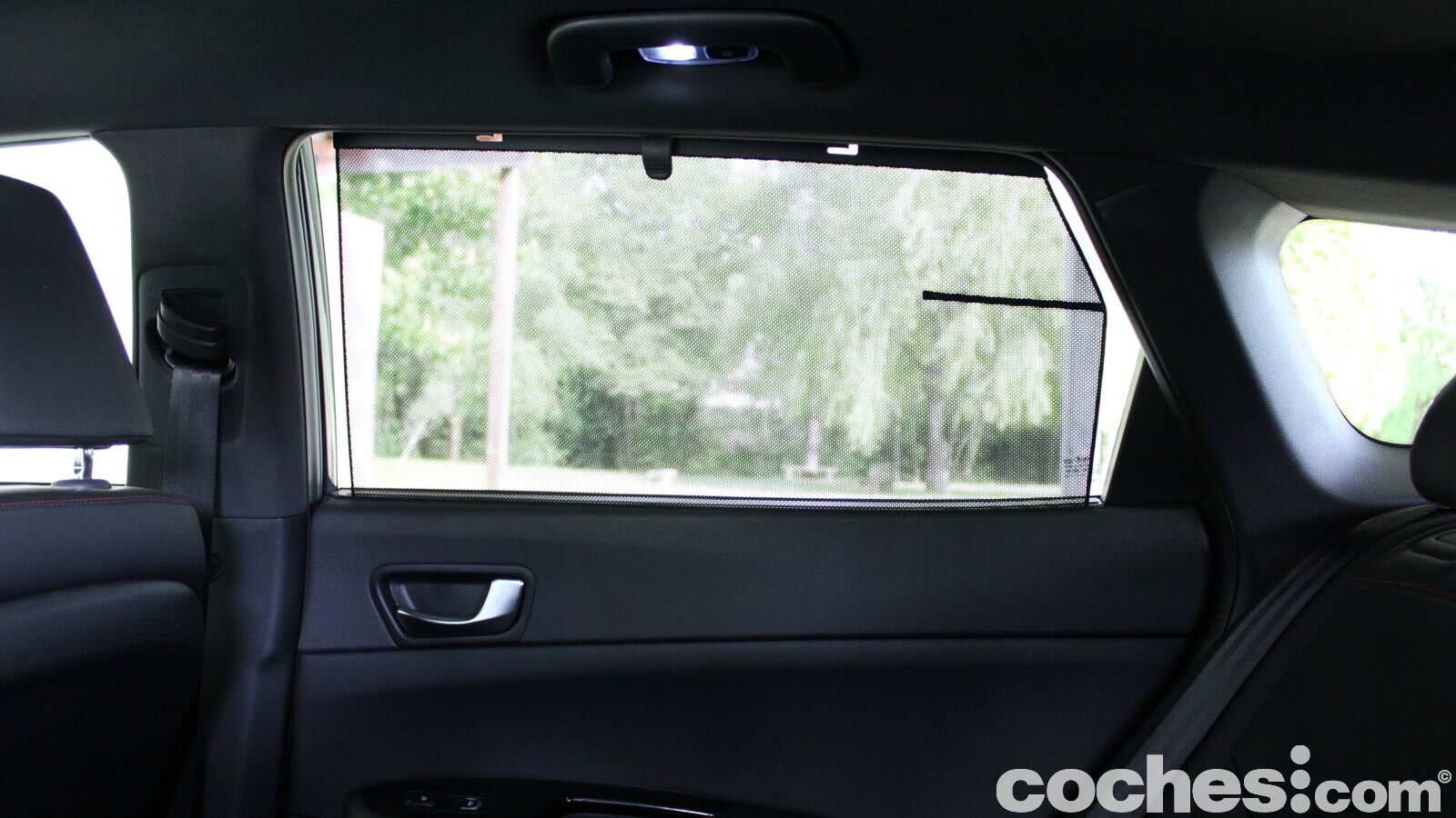 Lo que sí que agradecerán los pasajeros traseros, en el acabado GT Line es la presencia de las lunas tintadas y cortinillas en las ventanillas para una protección extra contra el sol.