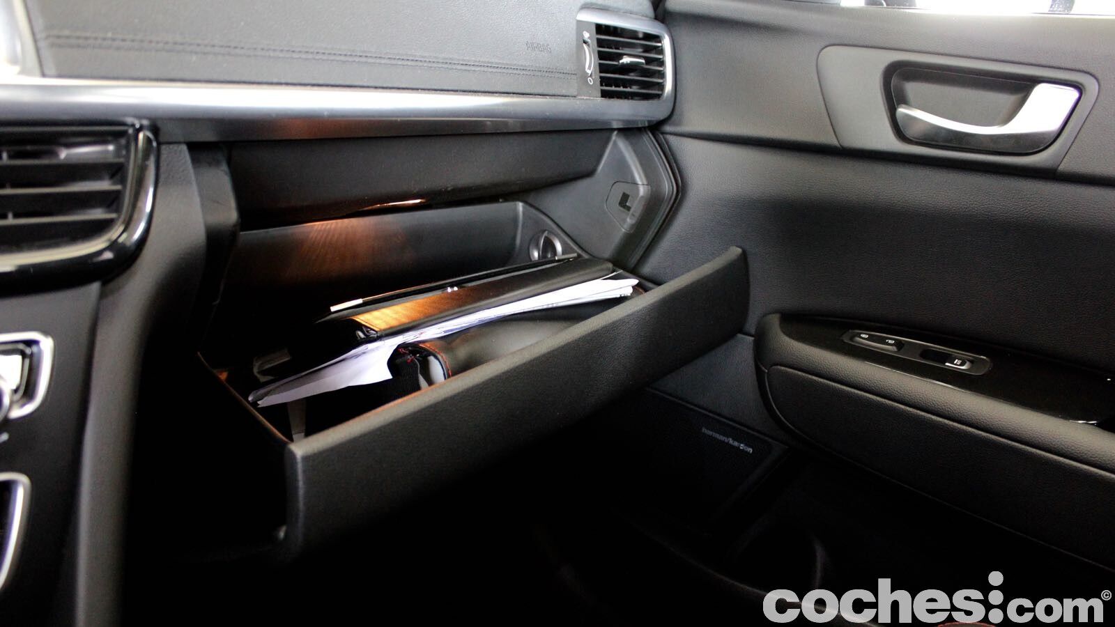 Justo ahí hay también dos reposabebidas que preceden a un cofre entre los asientos, escondido bajo un cómodo reposabrazos. Completa el número de huecos interiores una guantera de generosas dimensiones, iluminada.