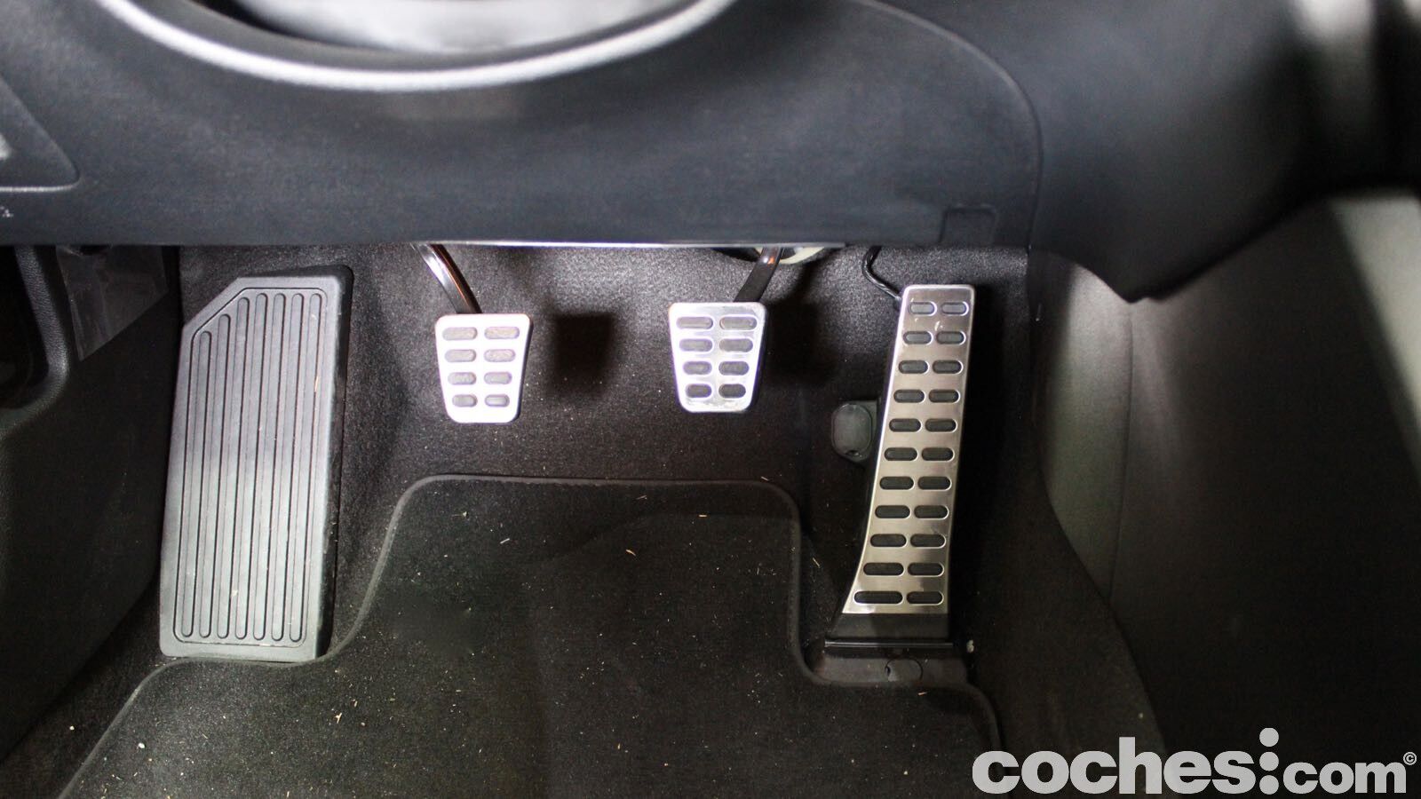 Y es que el acabado GT-Line cuenta con algunos elementos que mejoran el aspecto del interior respecto a otras más sencillas. Una de las más destacables es el volante, con la base achatada y forrado en piel con pespuntes en rojo, pero también hay pedales de aluminio, por ejemplo. La denominación del acabado se muestra en la parte inferior en una zona cromada.