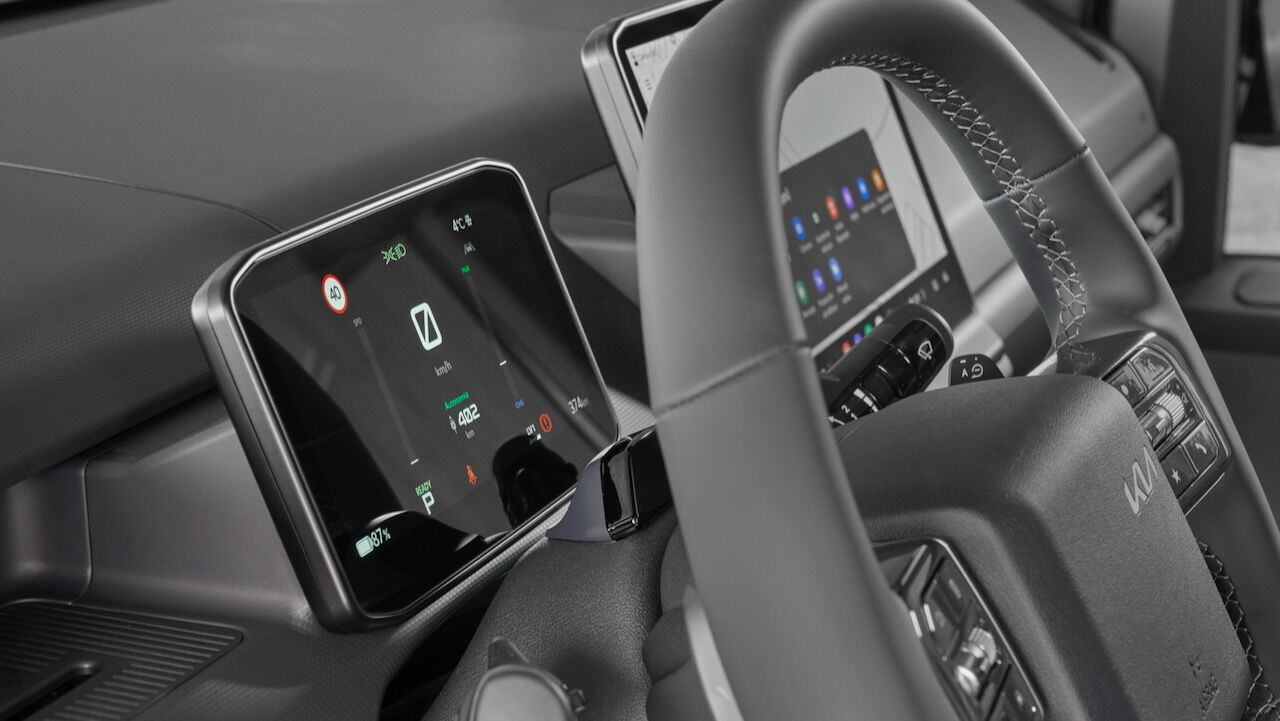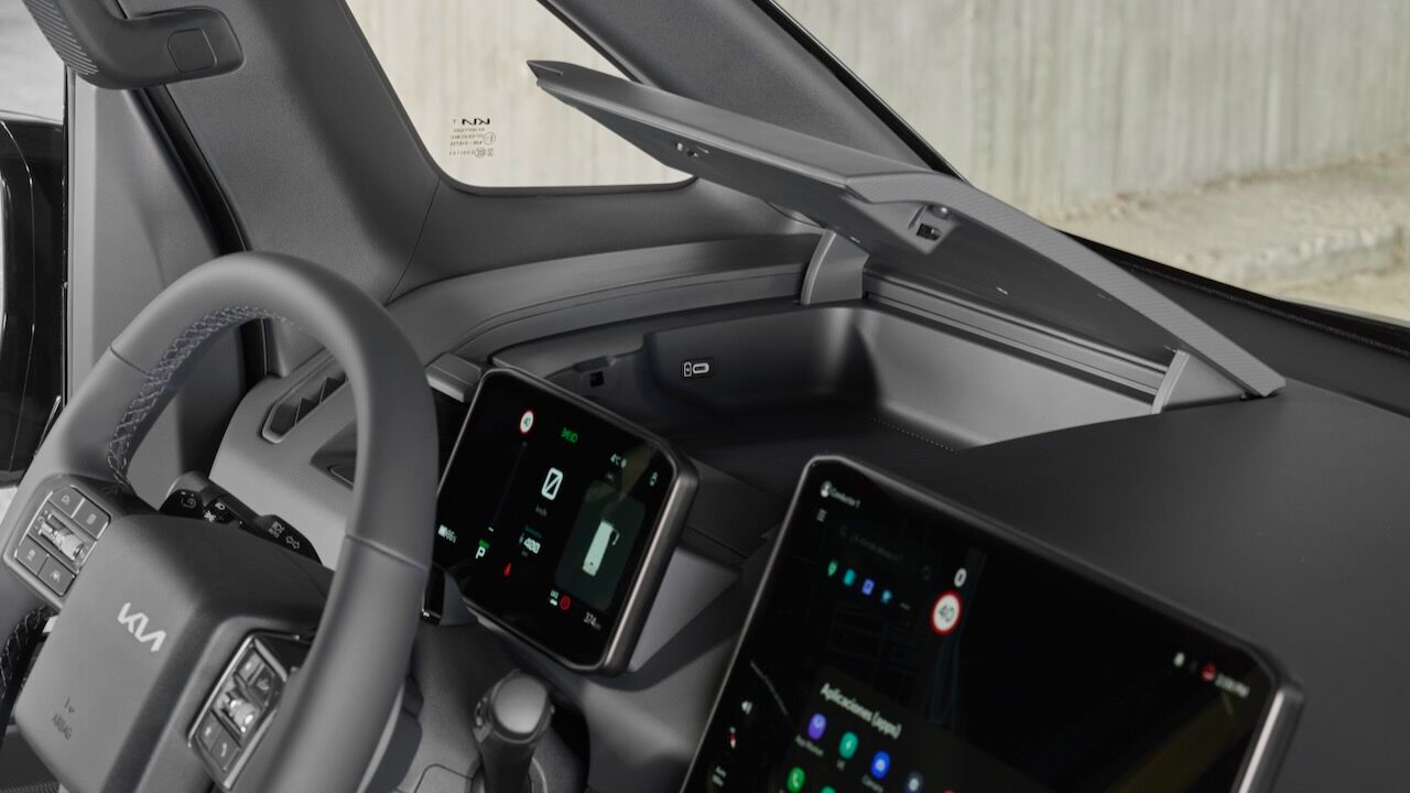 En todo caso, podemos afirmar que es un habitáculo mucho más cercano al de un turismo de lo que podríamos pensar. El minimalismo ha calado hondo y el protagonismo recae en sus pantallas. La instrumentación digital de 7,5 pulgadas es más que suficiente para mostrar la información más importante durante la conducción. Y se complementa con una pantalla táctil de 12,9 pulgadas que está perfectamente integrada en el salpicadero. La conectividad es máxima gracias a Android Auto y a Apple CarPlay.