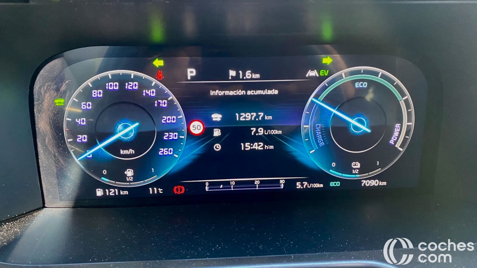 ¿Por qué repetir la prueba con el Sorento híbrido? Pues principalmente, para medir bien los consumos en autovía. Por azares circulatorios, en la anterior ocasión me topé con varios accidentes y atascos que dieron lugar a unas mediciones demasiado ventajosas para un coche con su sistema de propulsión: retenciones frecuentes, ritmos muy tranquilos y pocos momentos a velocidad de crucero sostenido.