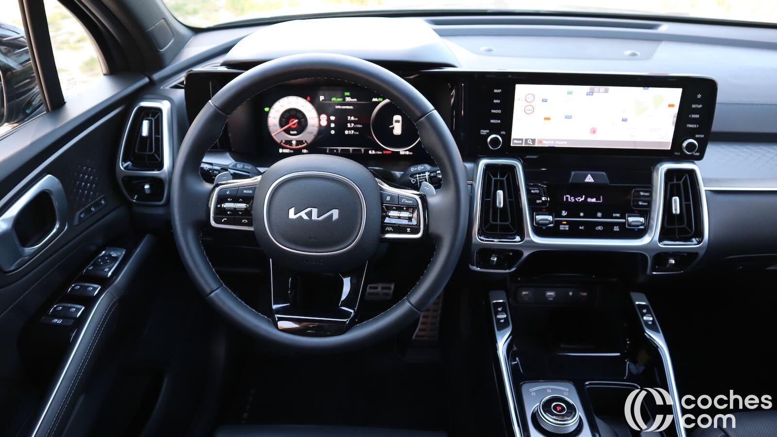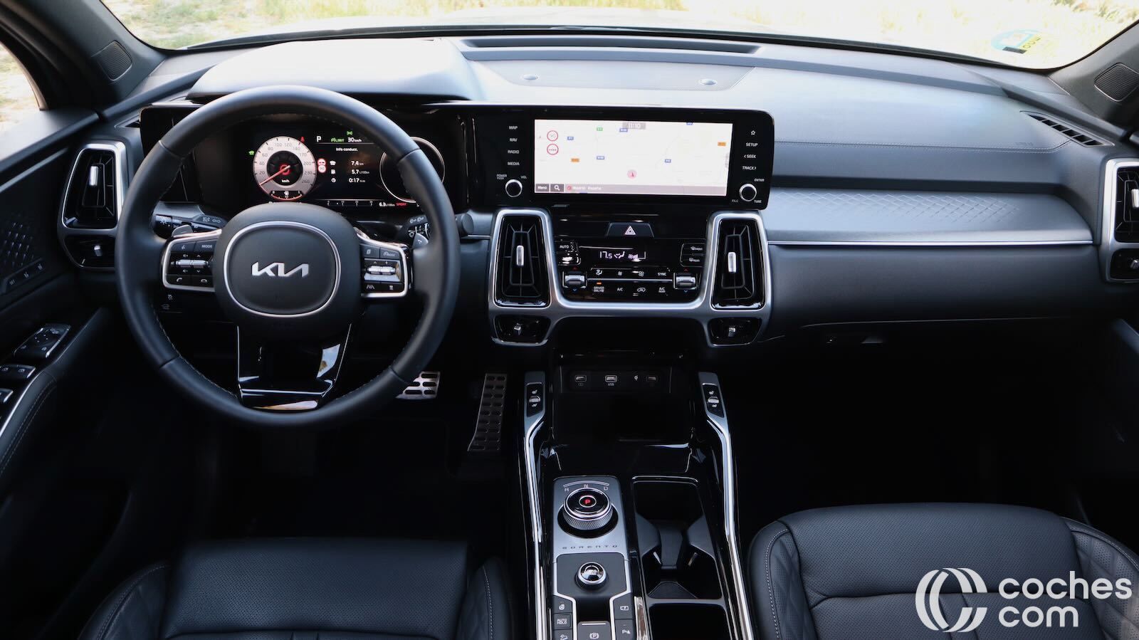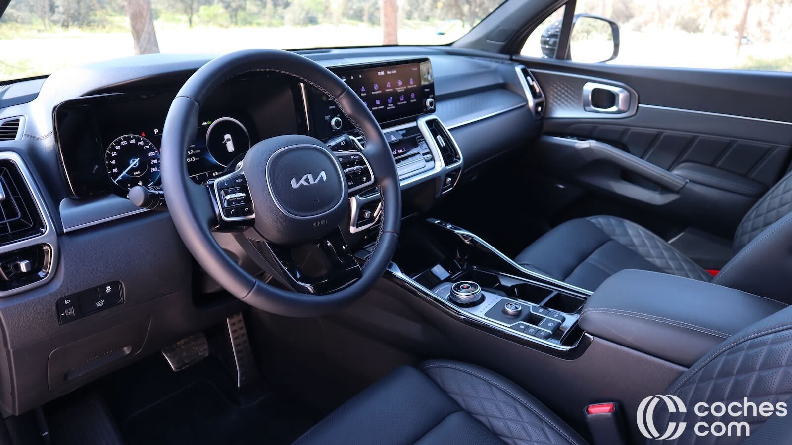 El Kia Sorento Black Edition cuenta de serie con asientos delanteros ventilados y calefactados con tapicería en piel (el del conductor además con función memoria). El volante multifunción o los asientos traseros también están calefactados y cuenta con el cuadro de instrumentos digital de 12,3 pulgadas, al que se suma una segunda pantalla para el sistema multimedia de 10,25 pulgadas.