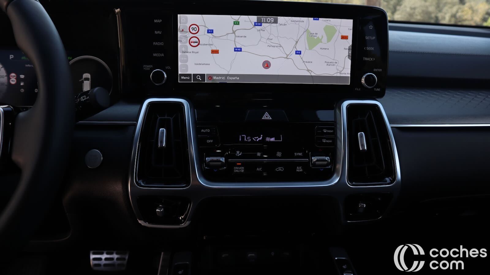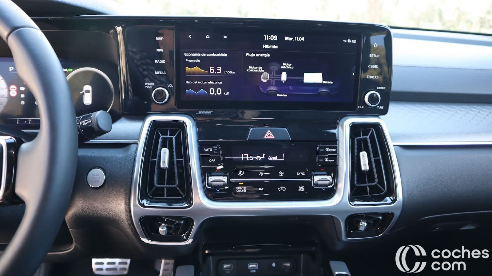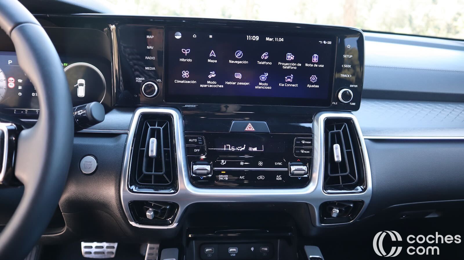Este incluye el sistema Kia Connect, conectividad con Apple CarPlay y Android Auto, cámara de visión 360 grados (casi imprescindible en un coche de sus dimensiones) o navegador. También cuenta un Head Up Display y un equipo de sonido Bose.