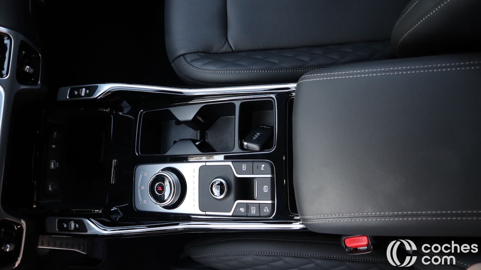 No hay emblemas que distingan al Sorento Black Edition. Hay que fijarse en algunos pequeños detalles, como el color negro elegido para el marco de la parrilla (cromado en otros acabados). Vemos también ese color en raíles de techo y carcasas de los espejos retrovisores, además de cromados oscurecidos de las ventanillas y estribos laterales. Las llantas de nuestra unidad de pruebas eran de 19 pulgadas, pero si lo eliges diésel alcanza las 20.