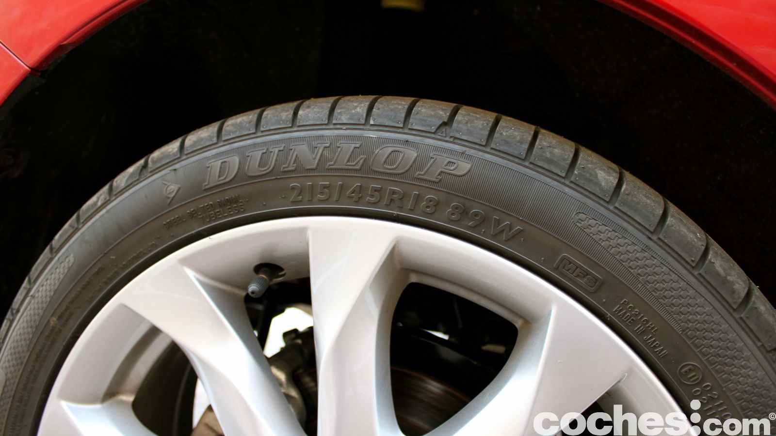 Bajo los pasos de rueda remarcan unas llantas de aleación de 18 pulgadas en nuestra unidad, que montan unos neumáticos 215/45. El juego de luces y sombras que crean los pliegues de la carrocería resaltan con algunos de los nueve colores de carocería con los que puede elegirse, sobre todo este rojo metalizado (soul red metallic).