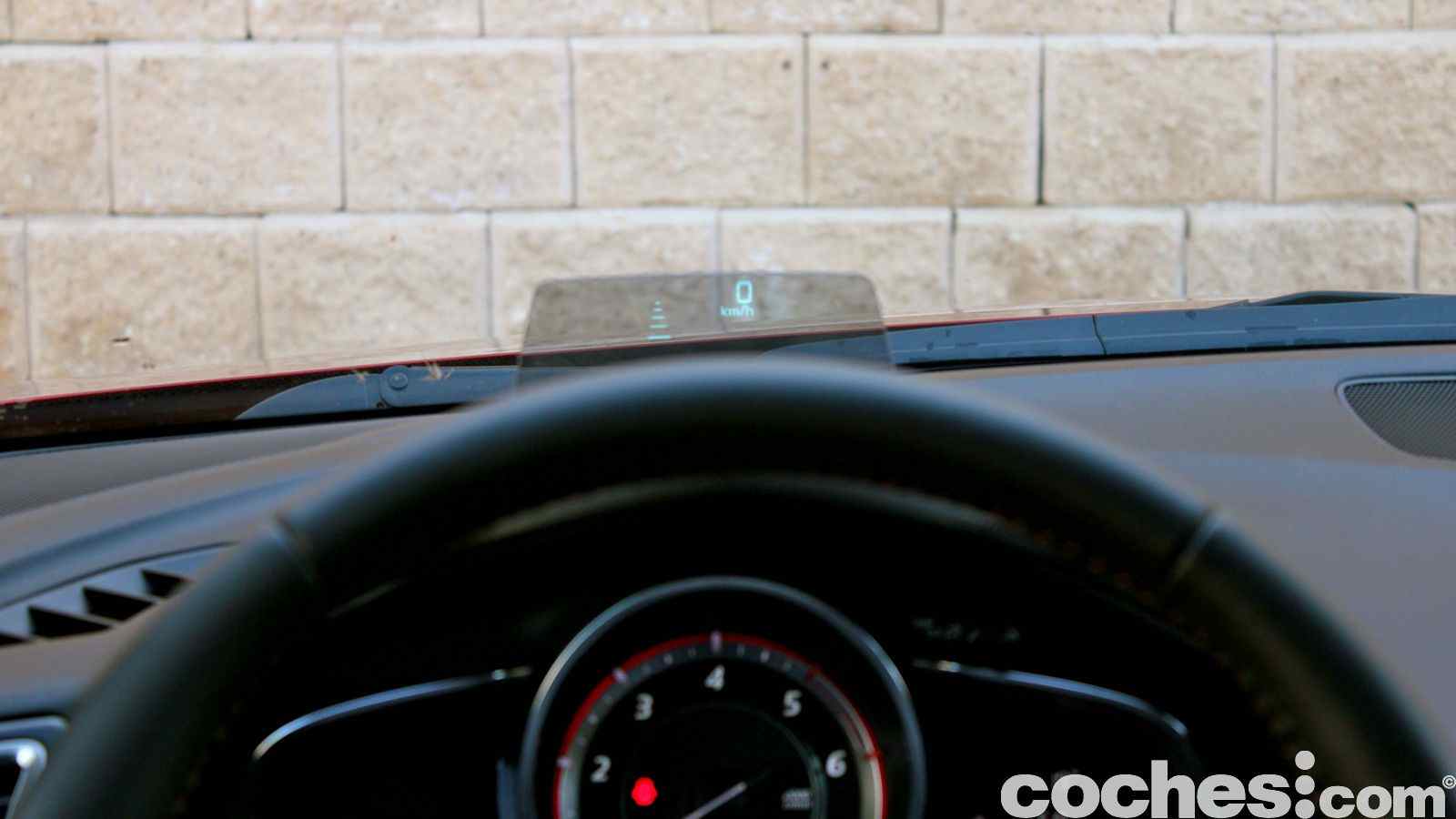 El cuadro de mandos de nuestra unidad (acabado Luxury) es diferente al que tienen las dos terminaciones más sencillas. En estas ecuentras el velocímetro clásico en el medio, con un tacómetro digital a su izquierda. En nuestro caso es el tacómetro el que preside el cuadro de instrumentos, con un velocímetro en una pequeña pantalla (que cuesta un poco ver en ocasiones sin desviar la vista). Ese dato es mejor visualizarlo en el Head Up Display, una pequeña pantalla de plástico donde se visualiza la información básica de conducción y que se yergue nada más arrancar el coche.