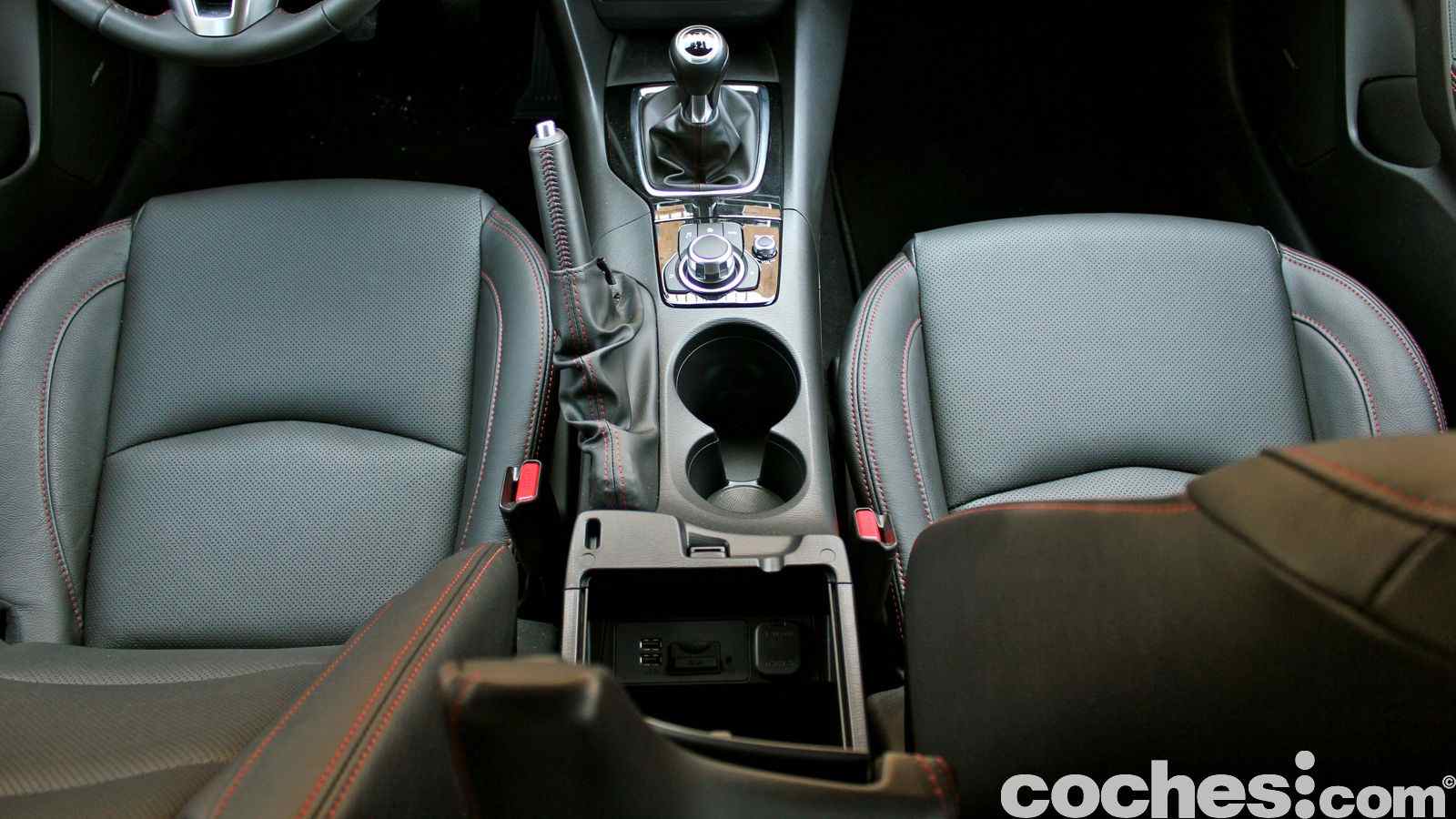 El interior es muy parecido, en acabados y disposición de los diferentes elementos, al que vimos hace unas semanas en nuestra prueba del Mazda 2 (ambos tienen el nivel de acabado más alto). Todo está colocado donde debe estar y es muy fácil encontrarlo todo: muy bien resuelta la ergonomía.