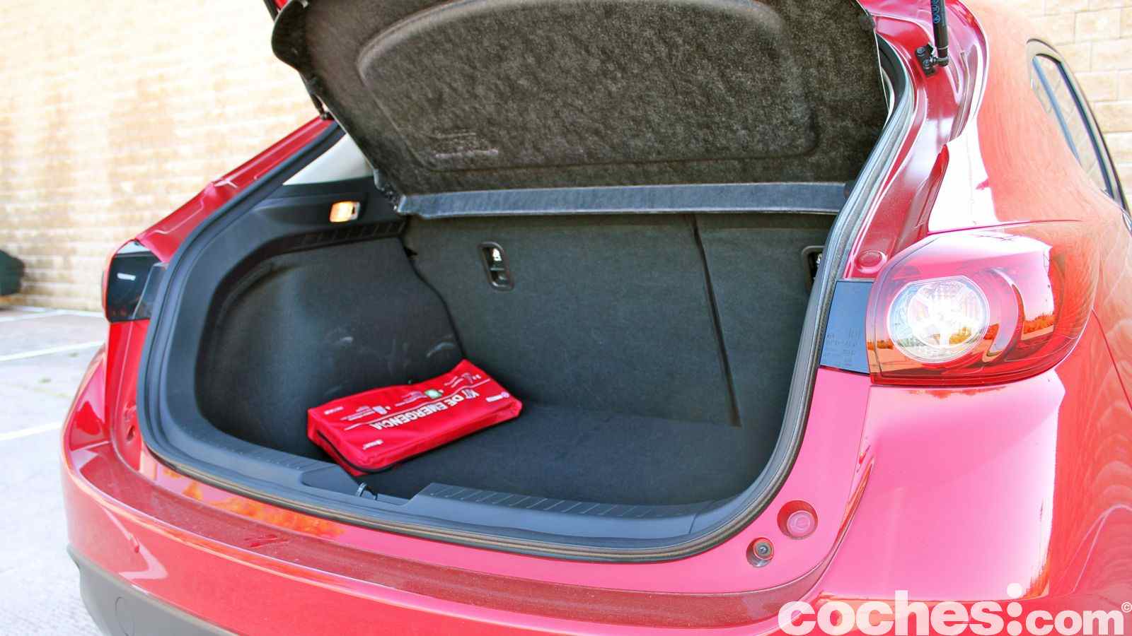 El Mazda 3 de cinco puertas tiene un buen maletero, con 365 litros de capacidad... si bien no es tan grande como cabría esperar de un modelo tan largo como este. Quienes necesiten más cuentan con otra carrocería, el Mazda SportSedan 2013, que llega a los 419 litros... pero no existe una carrocería familiar que elevase esta cifra. Como puedes ver en las imágenes está muy bien rematado y sus formas son bastante regulares.