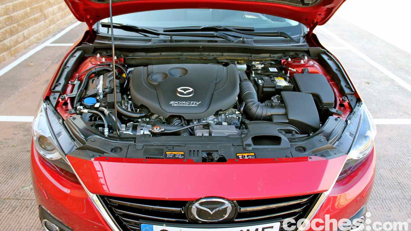 El Mazda 3 oculta bajo su capó un motor turbodiésel de cuatro cilindros y 2.191 cc de cilindrada que rinde 150 CV de potencia a 4.500 rpm. Es un rara avis en el panorama actual, en el que se logran potencias similares con bloques de muchas menor cilindrada. Mazda no cree en la minituarización mecánica y logra cumplir las normativa de emisiones Euro 6 con la tecnología SkyActiv.