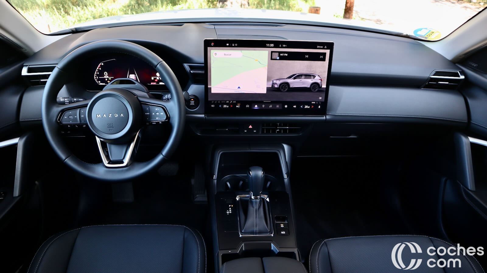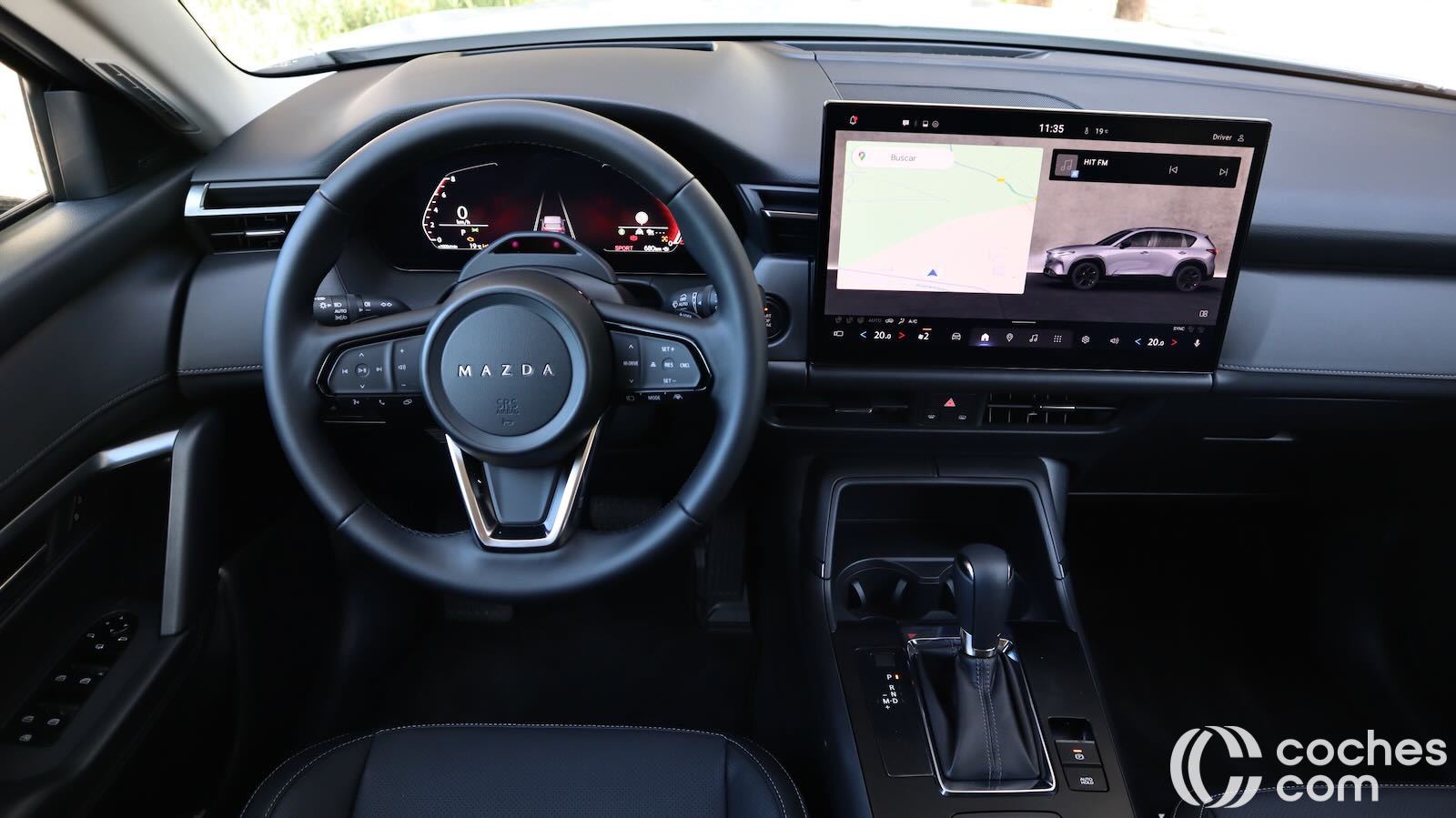 Segunda cuestión: ergonomía. Mazda apostaba por botones y mandos físicos y ahora muchas de las funciones pasan a estar en la pantalla. Tiene 12,9 pulgadas de serie o 15,6 en este acabado superior (más grande que mi portátil, de 13,3).
