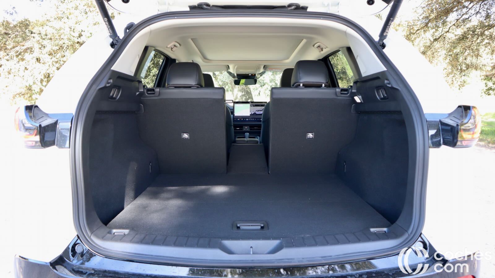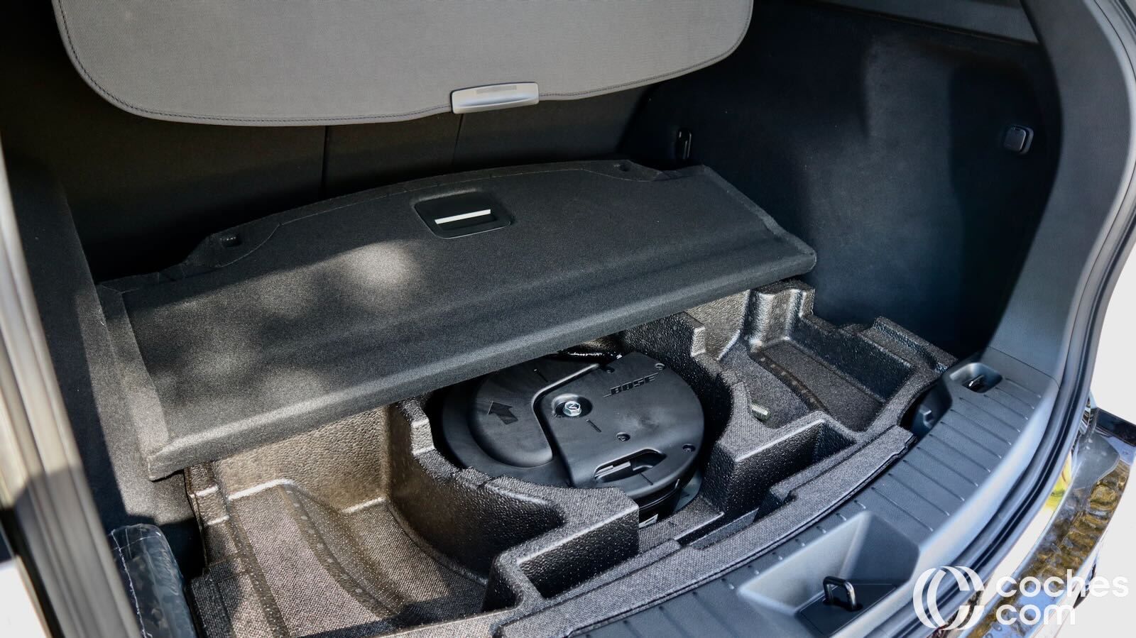 Ahora tiene una cortinilla convencional… aunque a mi me gustaba más el sistema anterior que iba unido al portón, me parecía más práctico. Eso sí, no faltan detalles prácticos como ganchos para fijar la carga, iluminación lateral o una toma de 12 voltios. También tiene un doble fondo compartimentado muy socorrido, aunque en el acabado Homura el subwoofer roba buena parte. Eso sí, no tanto como para no poder colocar el estor cuando no lo necesitas.