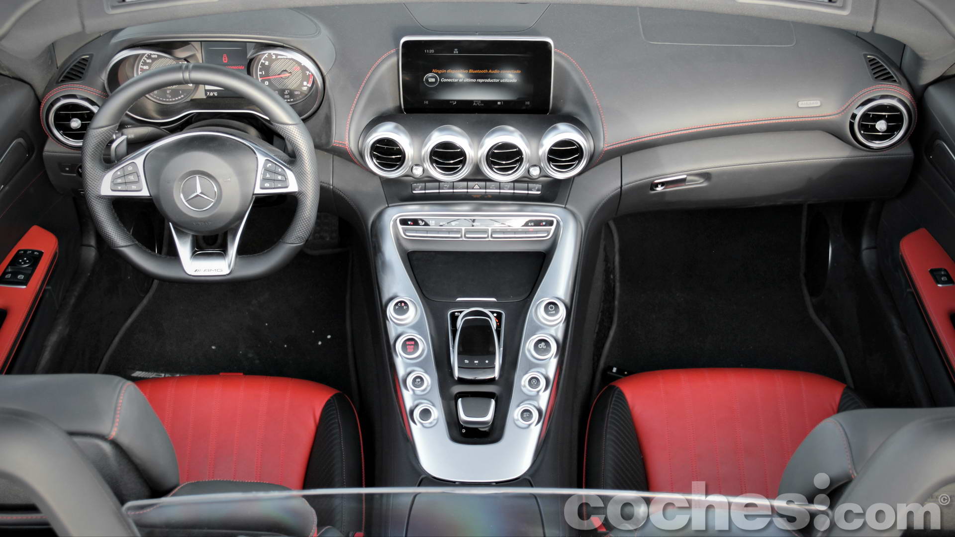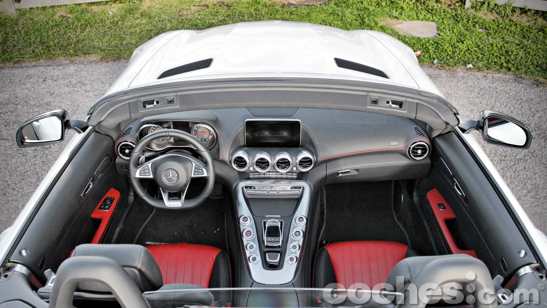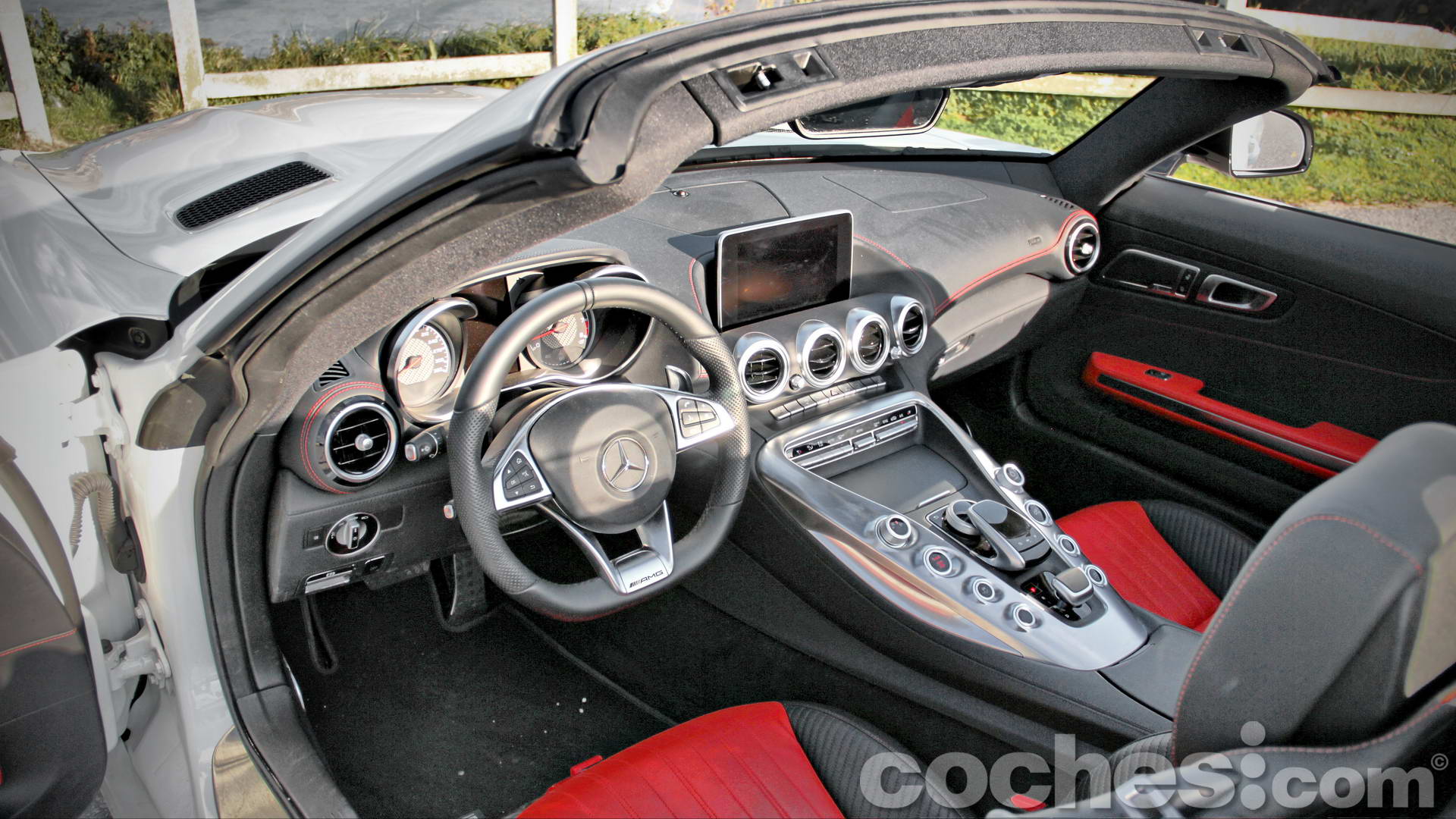 Su configuración resulta prácticamente idéntica a la que ya vimos en su momento en el Mercedes-AMG GT S, salvo por las peculiaridades propias de esta variante roadster, es decir, por la ausencia de un techo rígido que es sustituido por una práctica capota de tela.