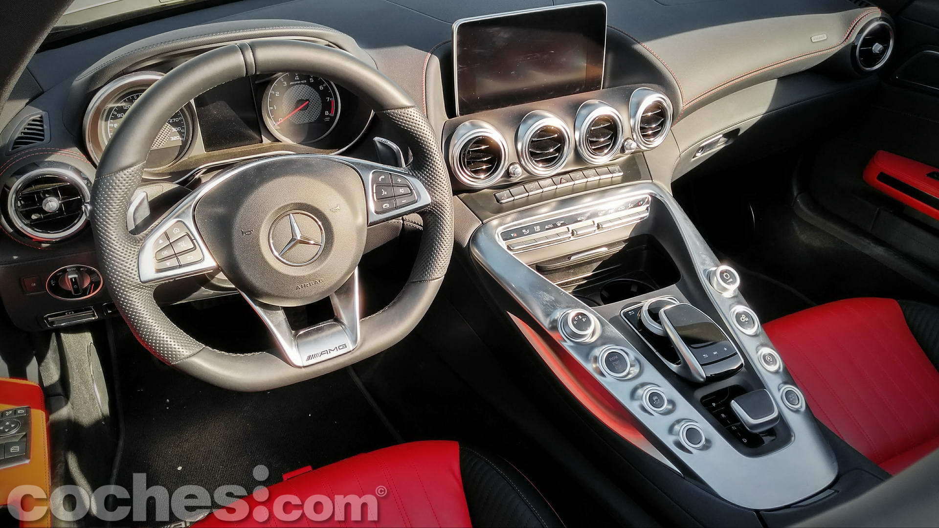 El salpicadero y la consola central exhiben las atractivas y envolventes formas de las últimas creaciones de la marca alemana, pero llevadas hasta su extremo, en consonancia con el carácter radical de este deportivo. Aunque quizá lo menos atractivo es la presencia de la pantalla flotante del sistema multimedia COMAND Online, similar a la que podemos encontrar en los modelos compactos de la firma alemana, en la que se pueden visualizar todas las informaciones de navegación, teléfono, audio o internet.