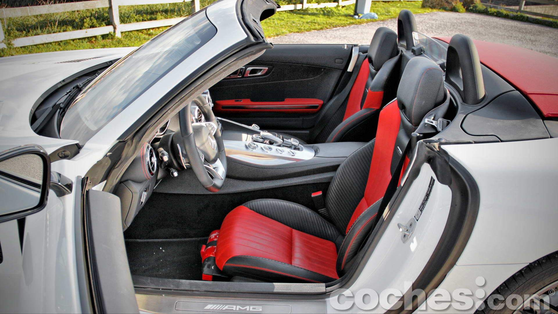 La postura de conducción, no deja lugar a dudas, es un verdadero deportivo, pues no sólo vamos situados muy bajos, sino con las piernas y los brazos completamente estirados. Sorprendentemente, para el carácter radical del vehículo, una vez nos aposentamos en el asiento del conductor, éste resulta bastante agradable, tanto por sus anatómicas formas como por contar con todo tipo de reglajes eléctricos y, además, recoge razonablemente bien el cuerpo, sujetándolo firmemente incluso cuando practicamos la conducción más agresiva. Aunque de entre la inmensa lista de opciones también podremos equipar unos semi-bacquet AMG Performance (3.543,08 €), de configuración aún más deportiva. Pero, aun así, en los largos recorridos no resultan tan incómodos como en un principio pudiera parecer, sobre todo porque no tardaremos mucho en detenernos a visitar una gasolinera tras otra….