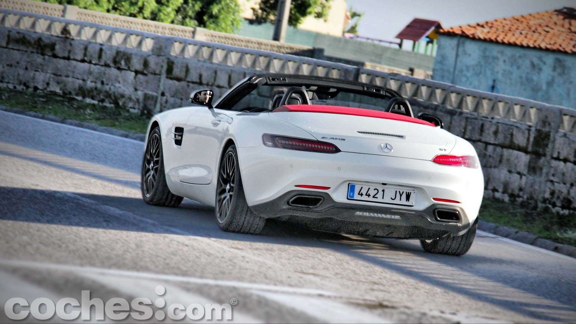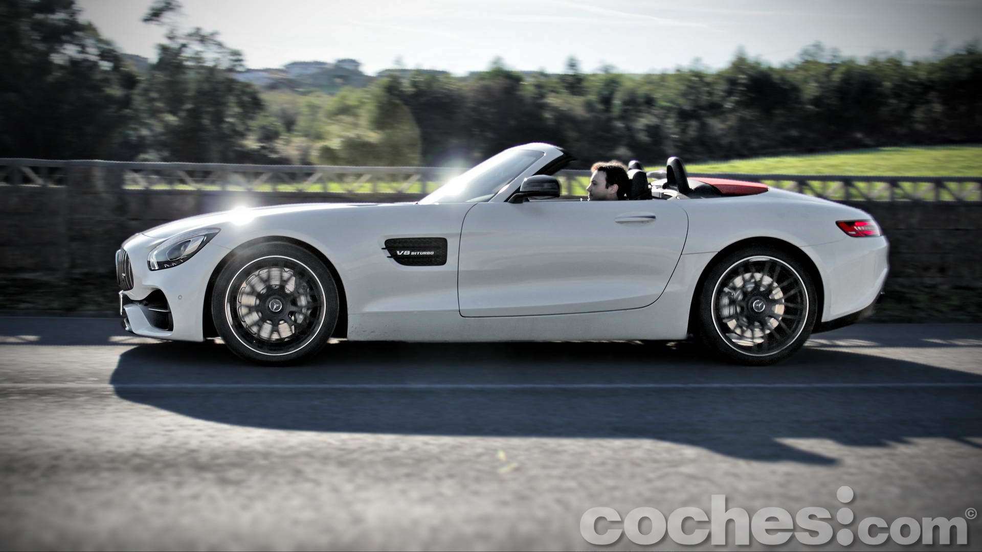 Llegados a este nivel la competencia tampoco está compuesta por tantos modelos, entre los que cabría destacar, por ejemplo, el Porsche 911 Turbo Cabrio o el Audi R8 V10 Spyder, que paso por aquí hace algunos meses a manos de nuestro compañero Mario Nogales. Frente a ellos, modelos ambos con propulsor posterior o central y dotados de tracción total, este Mercedes-AMG GT Roadster mantiene una estética retro y la esencia de su configuración clásica, con motor delantero, en posición central, y tracción exclusivamente al eje posterior.
