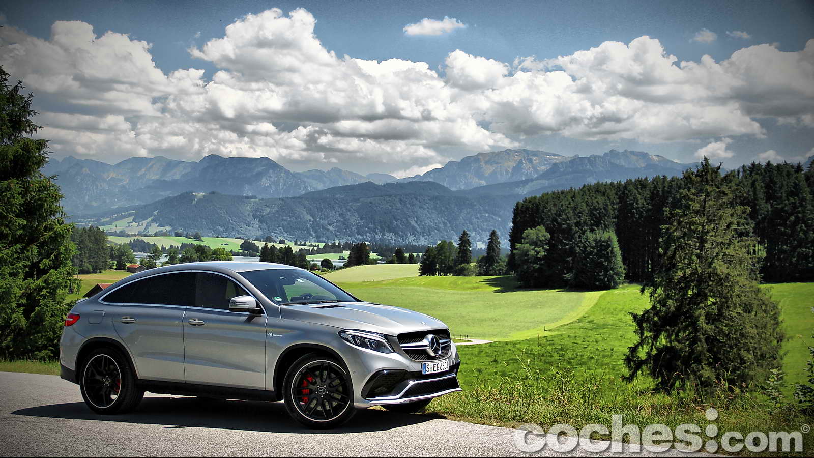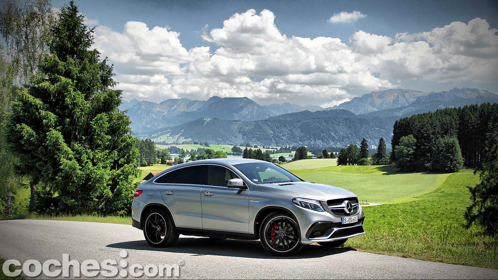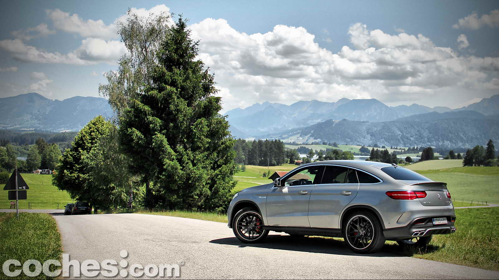 Tras reponer fuerzas disfrutando de las increíbles vistas de esta zona de la Alta Baviera, cambiamos de modelo para subirnos a un más racional Mercedes-Benz GLE 450 AMG 4MATIC Coupé con la carrocería decorada en un llamativo color Rojo Jacinto metalizado e interior Designo Exclusive siendo, además, el primer ejemplar de la nueva línea de modelos AMG Sport de Mercedes-Benz.