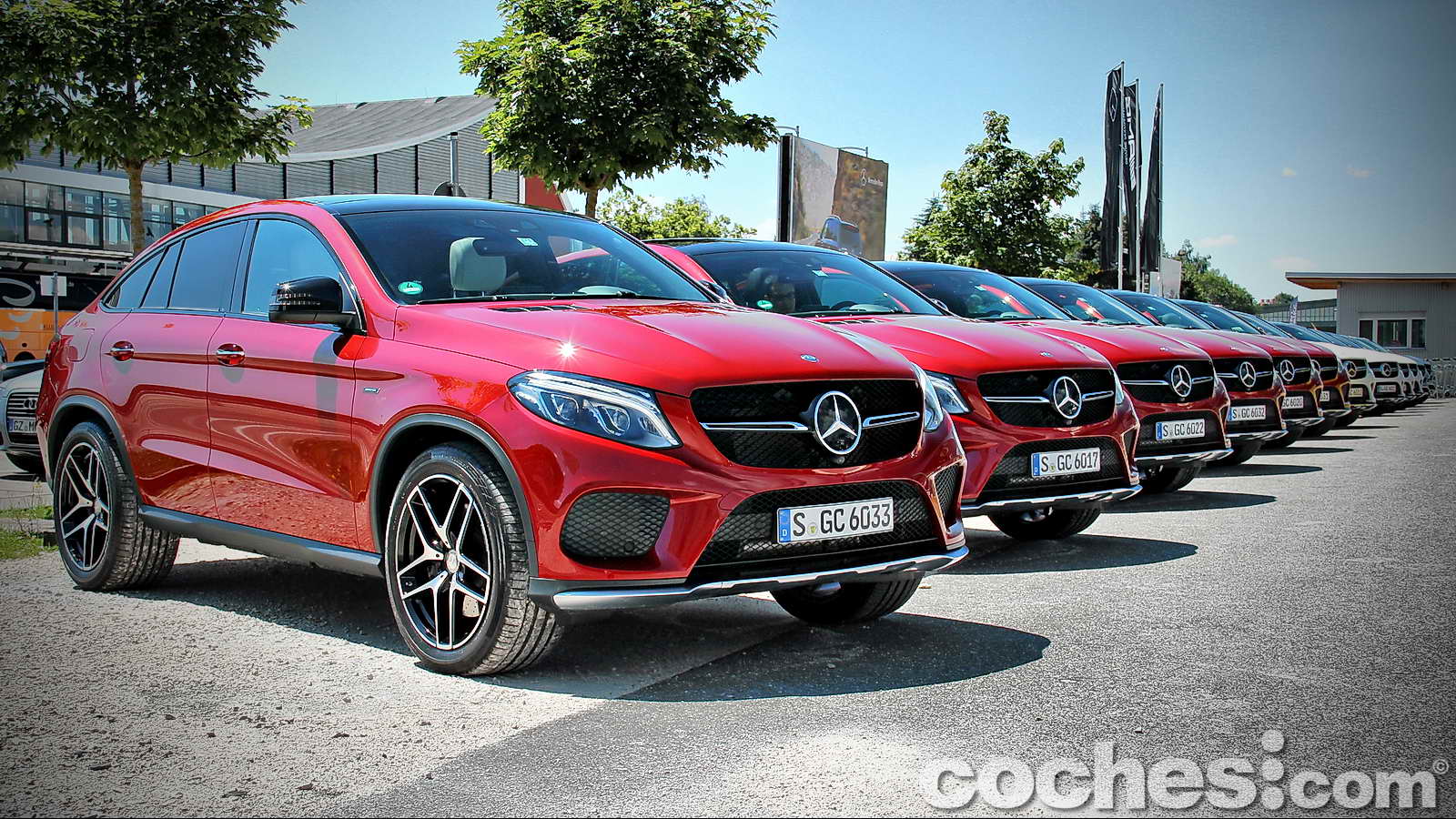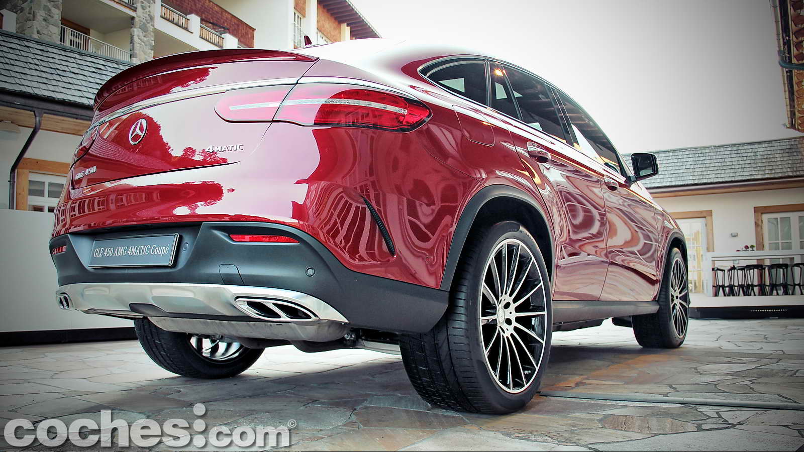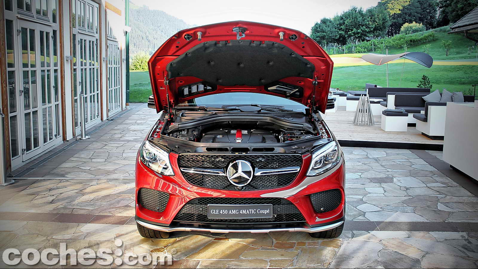 Tras reponer fuerzas disfrutando de las increíbles vistas de esta zona de la Alta Baviera, cambiamos de modelo para subirnos a un más racional Mercedes-Benz GLE 450 AMG 4MATIC Coupé con la carrocería decorada en un llamativo color Rojo Jacinto metalizado e interior Designo Exclusive siendo, además, el primer ejemplar de la nueva línea de modelos AMG Sport de Mercedes-Benz.