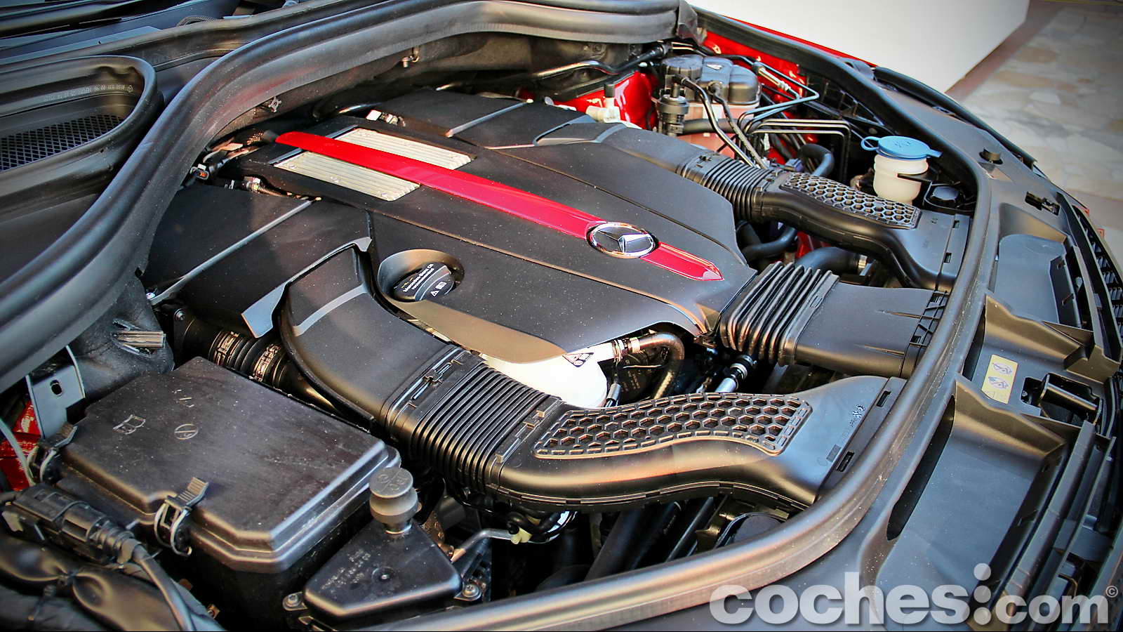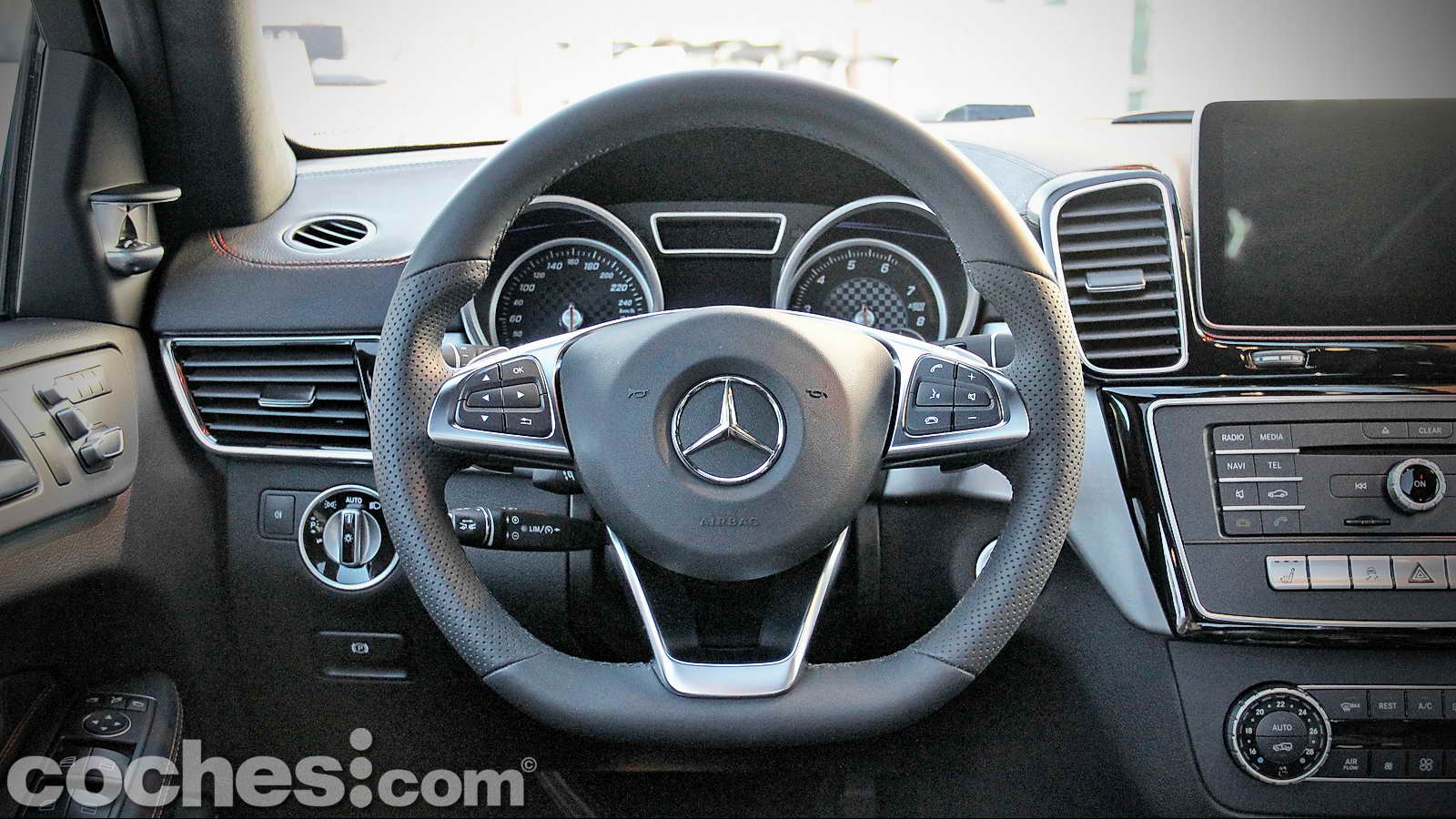El suave rodar de este nuevo SUV, similar al de las mejoras berlinas de la marca de la estrella, hacía que los kilómetros discurrieran con inusitada rapidez, acompañados siempre de un ambiente interior del máximo lujo, correspondiente al acabado individualizado Designo, con cuero de primerísima calidad por doquier, volante tapizado parcialmente en Alcantara, interior del techo y montantes en microfibra de color negro, profusión de molduras decorativas en fibra de carbono o unos asientos calefactados y ventilados que no sólo recogen el cuerpo a la perfección cuando se practica una conducción decidida sino que hacen que apenas notemos el paso de los kilómetros. Todo ello acompañado por un magnífico equipo de audio firmado también por Bang & Olufsen, que amenizaba la ruta con la selección musical almacenada en el disco duro del sistema multimedia.