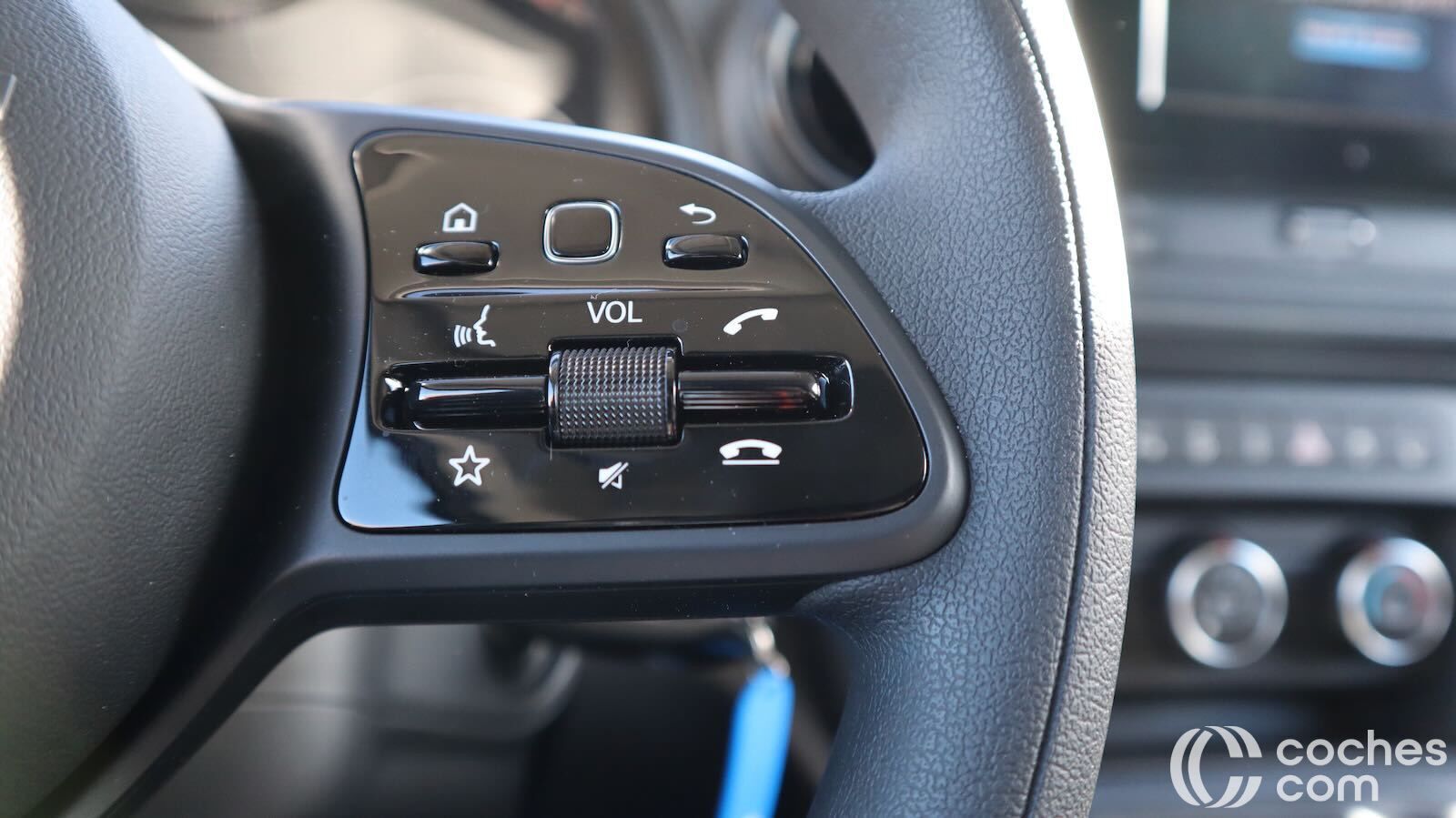 Otro espacio donde se aprecia ese toque Mercedes-Benz es en el volante, con los comandos táctiles que permiten moverte por los diferentes menús del cuadro de instrumentos o del sistema de infoientretenimiento. El cuadro es sencillo, de dos relojes que flanquean una pantalla, pero se ve mejor que el de la Kangoo.