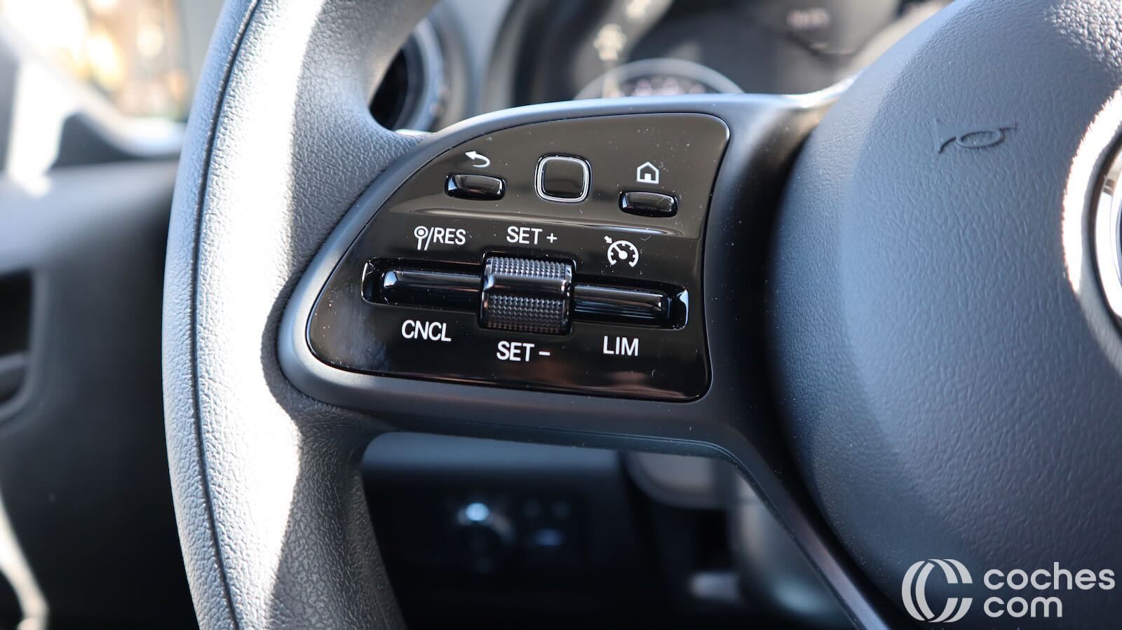De serie cuenta con los servicios Mercedes me y, si sumas la línea Pro (opcional) sumas las llantas de 16 pulgadas, iluminación interior en LED, elevalunas de confort en el lado del conductor, asiento del conductor regulable en altura, el suelo de plástico o el compartimento en el apoyabrazos. Destacable la gran conectividad con el móvil. Si la pantalla incluye navegador, cuentas con Apple Carplay y Android Auto inalámbrico, un detalle que no es menor.