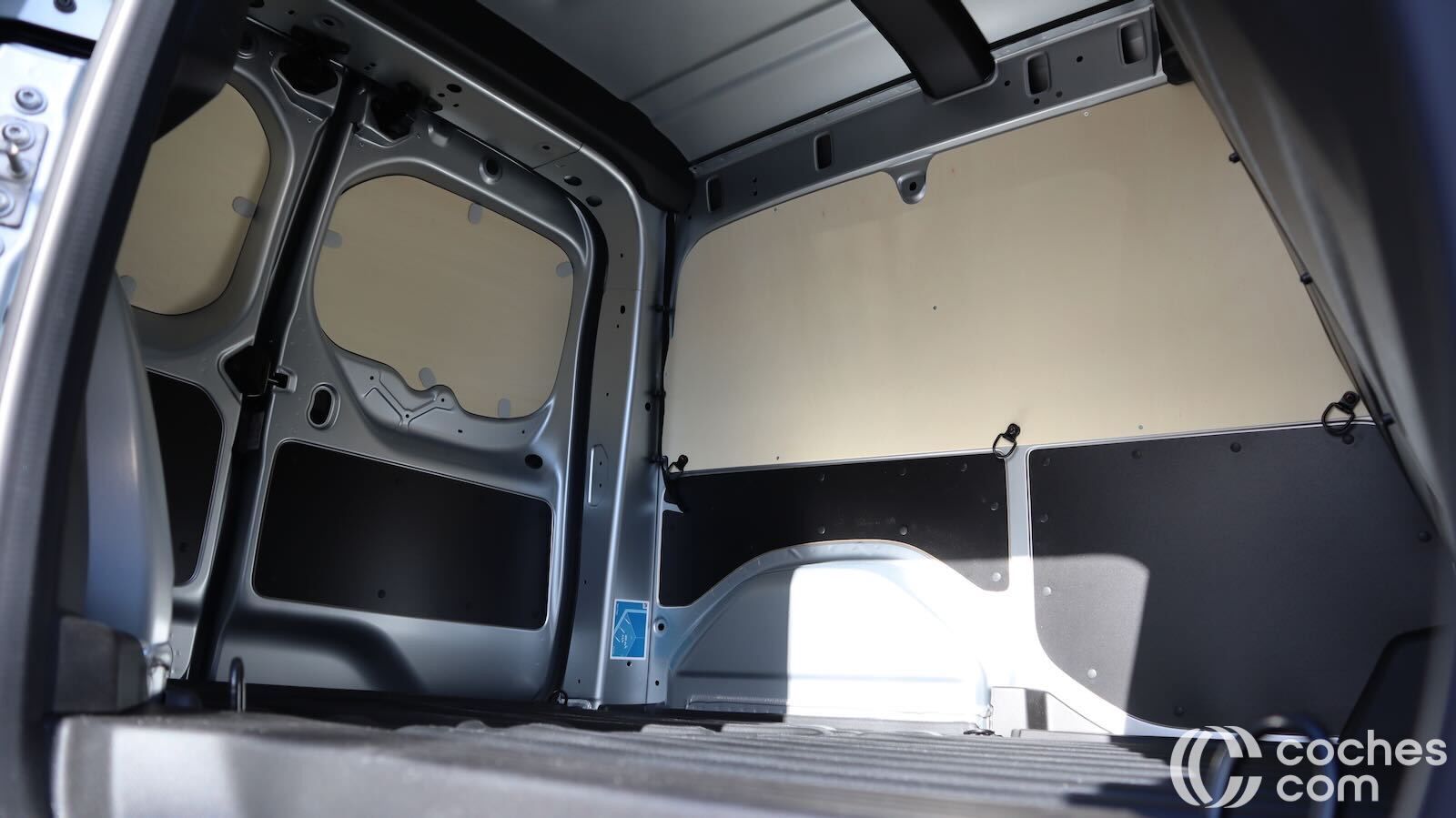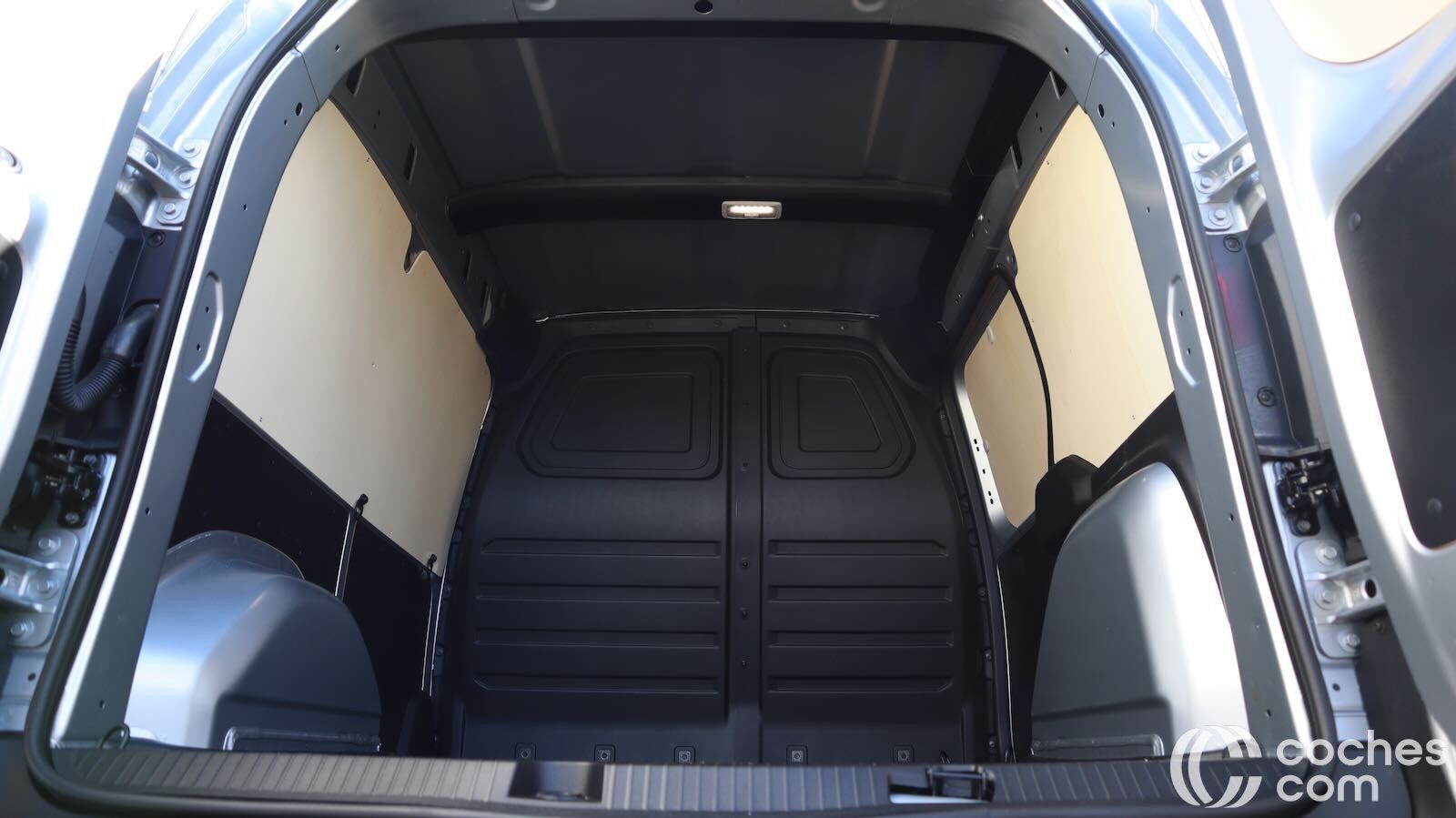 A esta zona se accede mediante dos puertas traseras asimétricas (la más ancha es la izquierda y es la que se abre primero). Ambas piezas pueden bloquearse en posición de 90 grados y abrirse hasta a 180 grados hacia el lateral. No era el caso de nuestra unidad de prueba), pero pueden contar con una luneta calefactable y limpiaparabrisas (que mejoraría la visibilidad trasera) o incluso un portón como el de la Citan Tourer.
