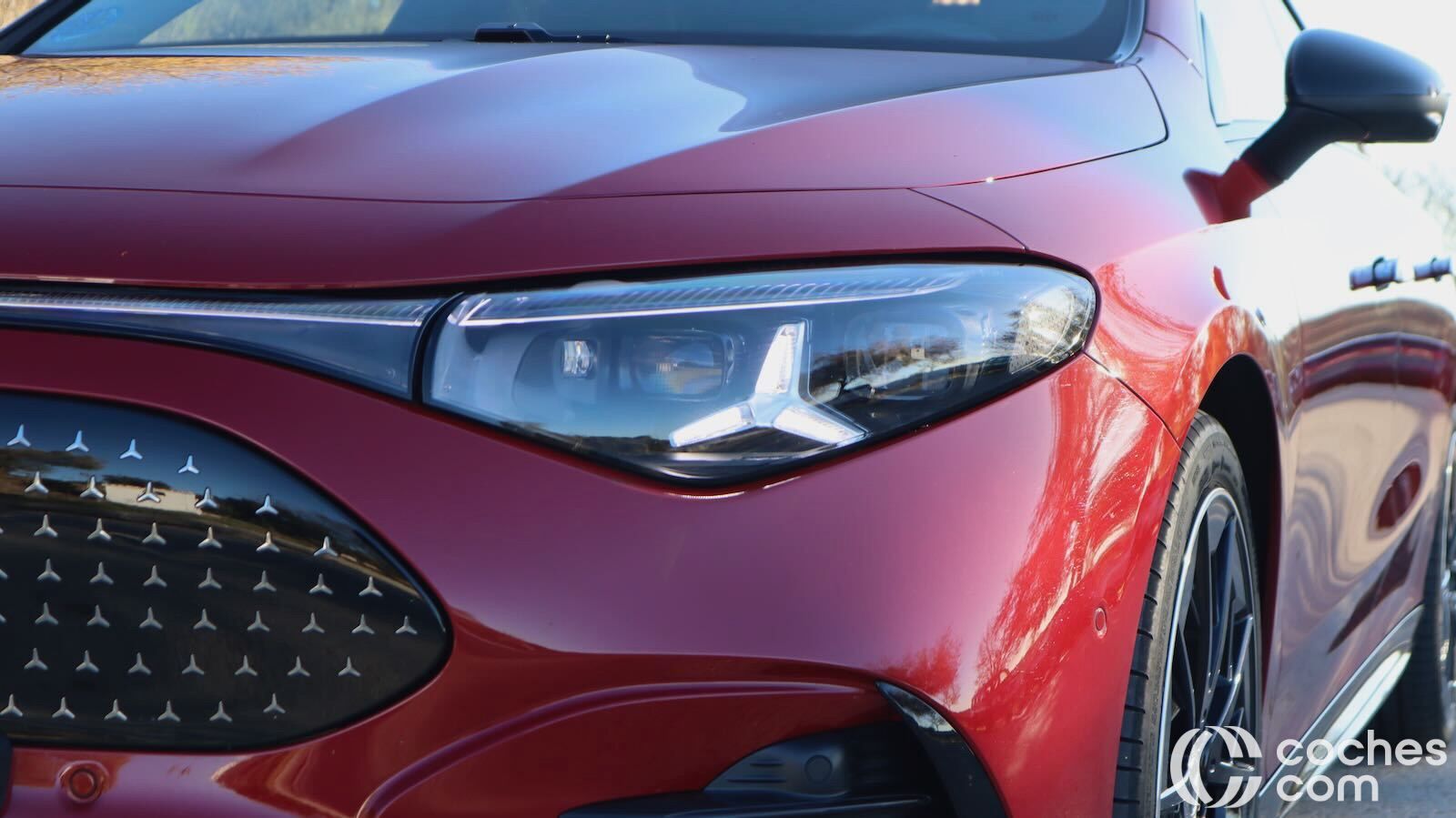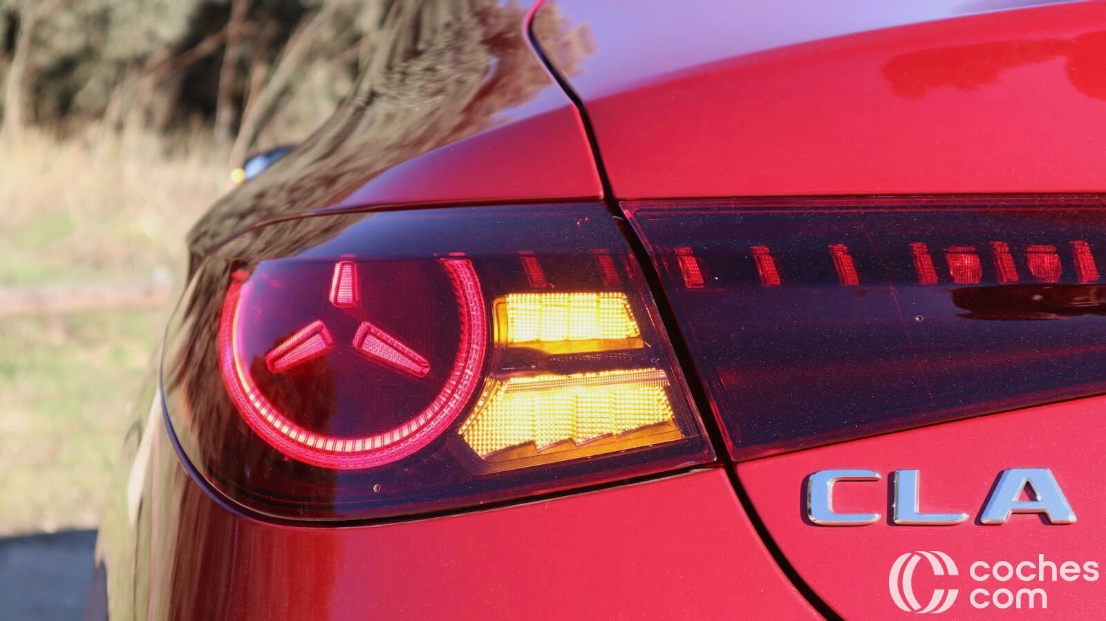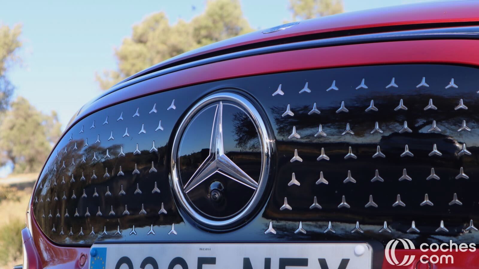 Esa característica nos deja con una parrilla cerrada completamente, retroiluminada con 142 estrellas luminosas que se animan al anochecer. Obviamente, este detalle te lo pierdes en las versiones mild hybrid del CLA. Completan el firmamento los faros LED con firma lumínica en forma de estrella y que están unidos entre sí en la zona superior por una tira de luz.