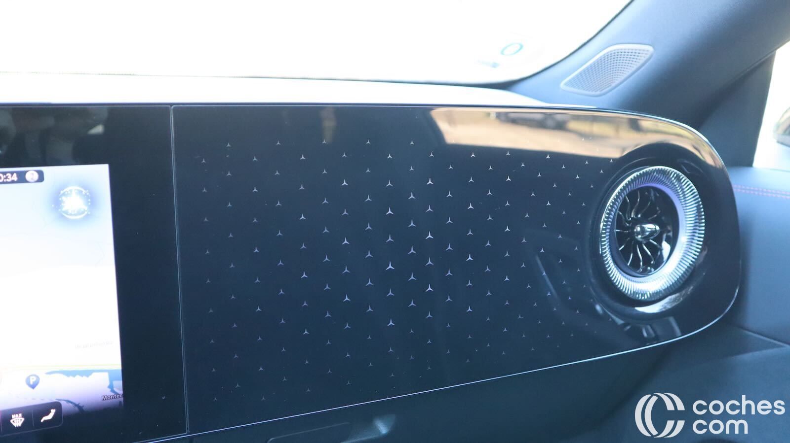 Opcionalmente, una tercera pantalla de 14 pulgadas frente al acompañante. Si no la eliges, hay una moldura con un gráfico de patrón de estrella que dar continuidad al vidrio en esa zona: como en nuestra unidad, puede ir retroiluminada.